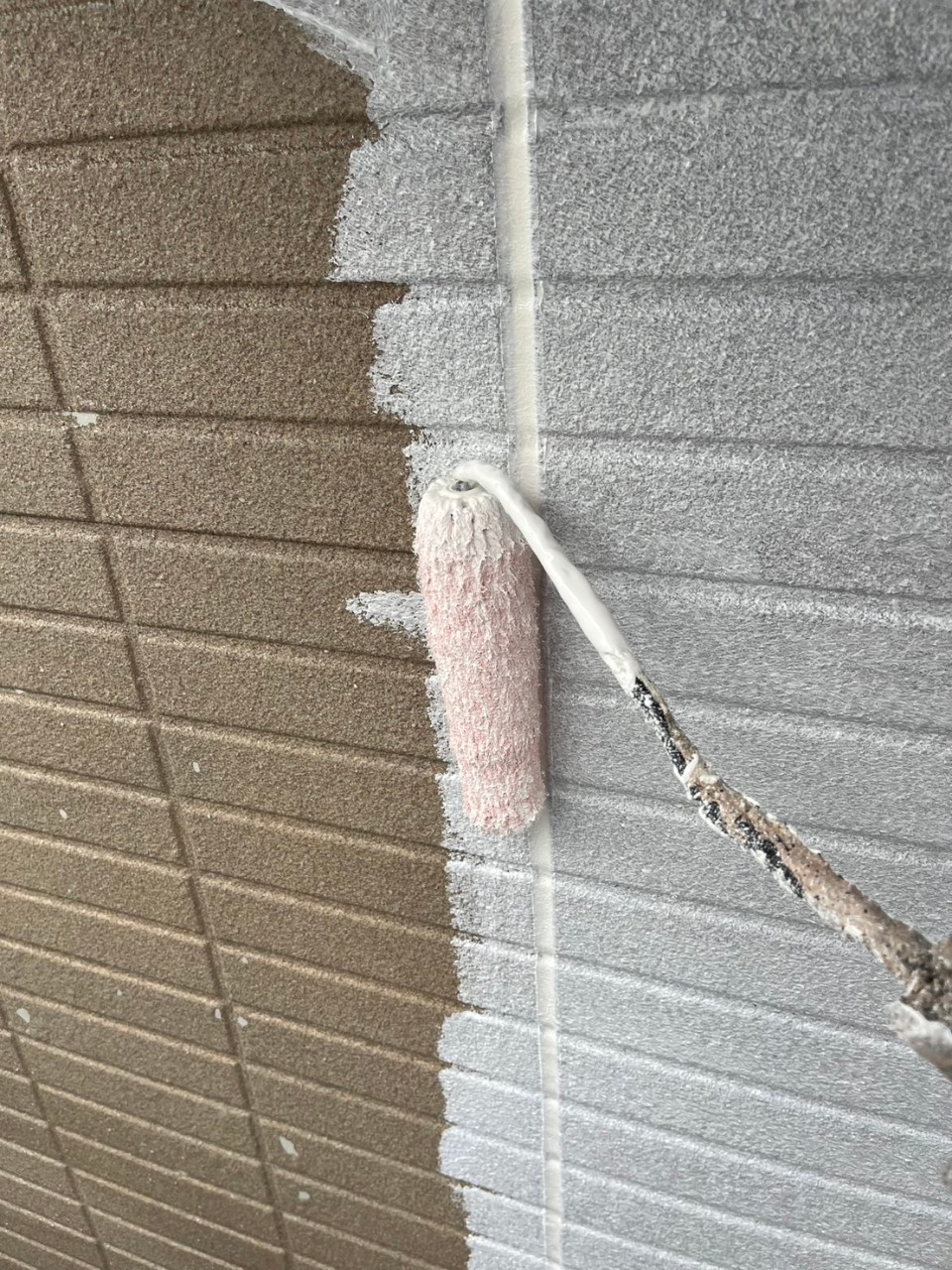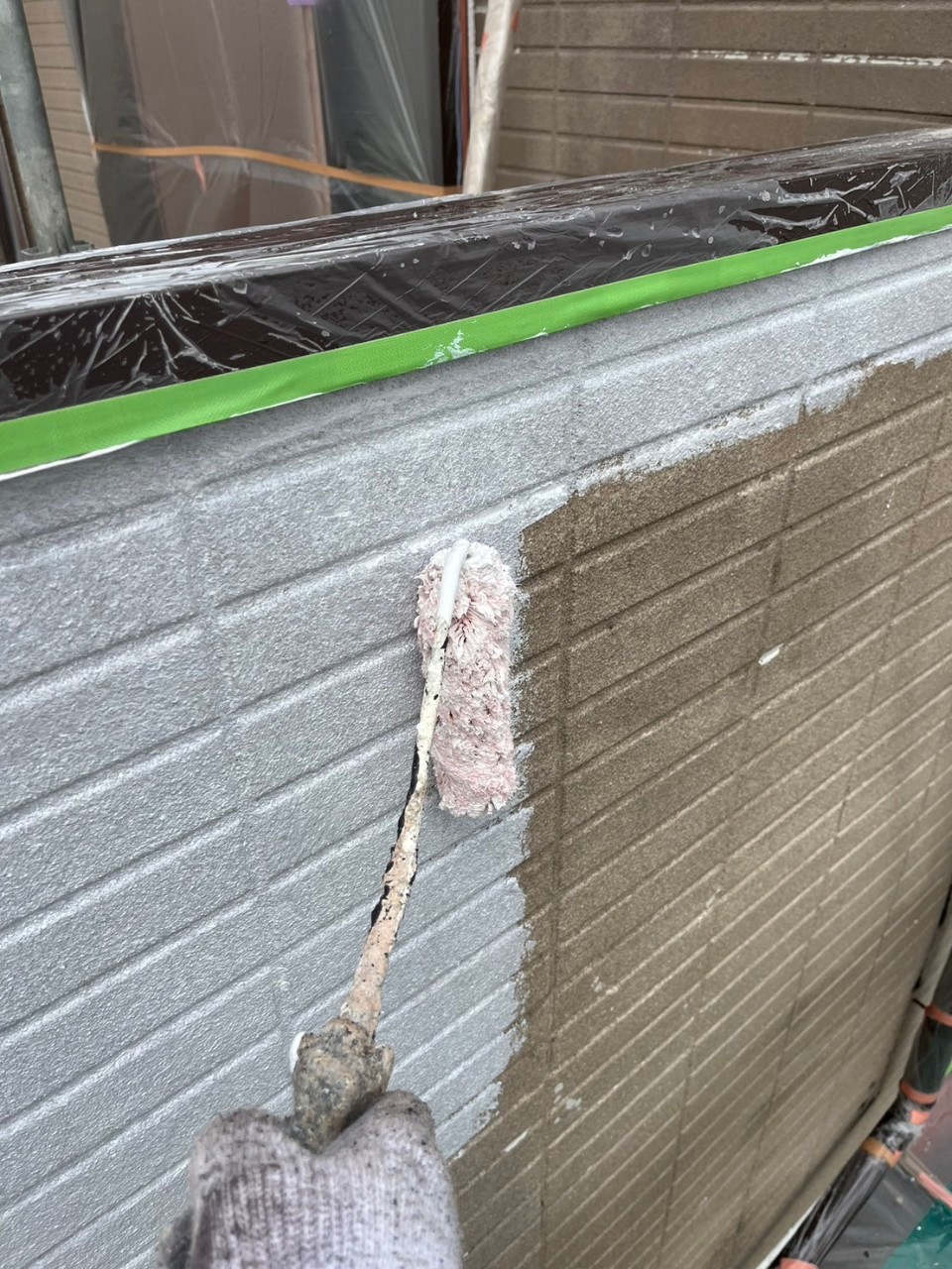 外壁の素地が粗く、均一な仕上りにする為、こちらを使用してしっかりと塗布を行っていきます。