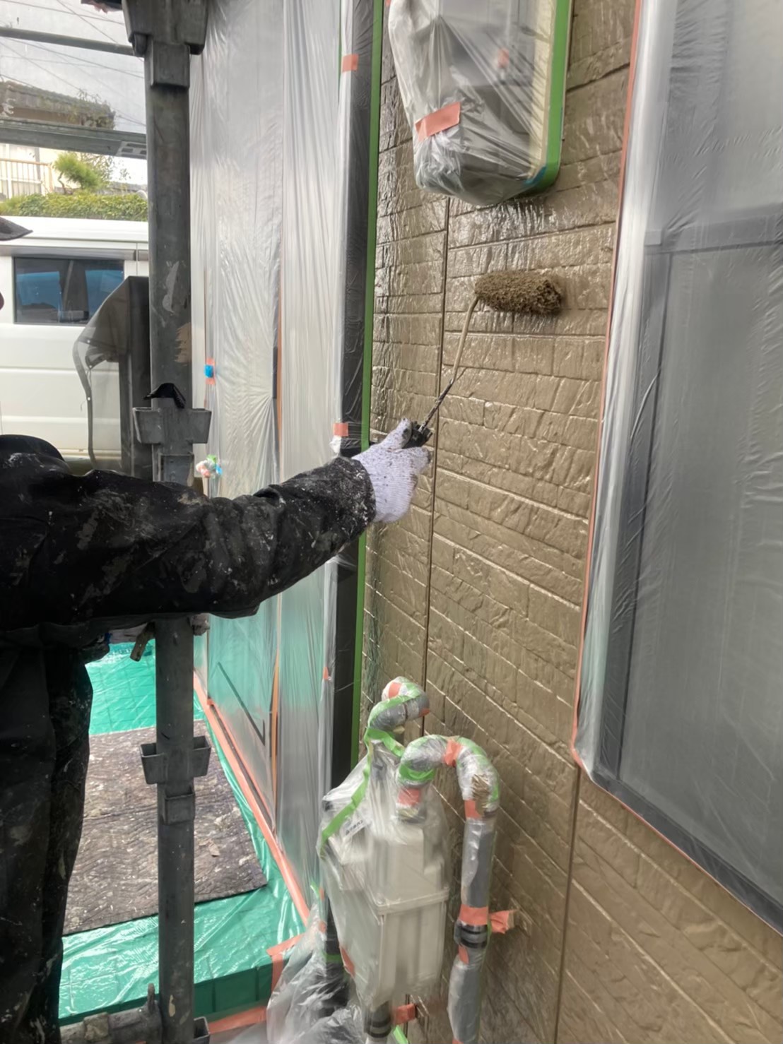 本日は外壁の中塗りの様子をお伝えいたします。