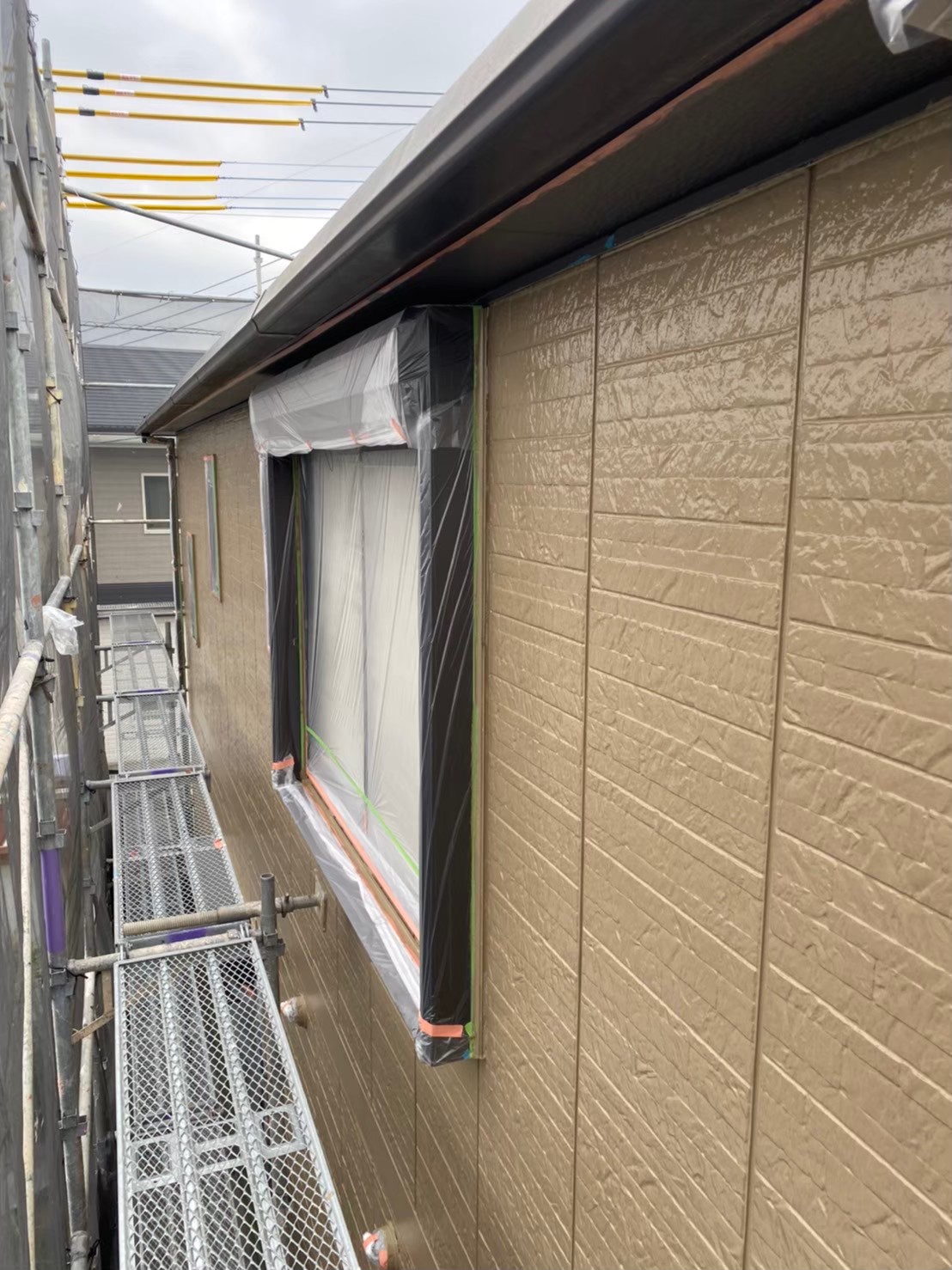 明日は屋根の中塗り、軒天井塗装を行います。