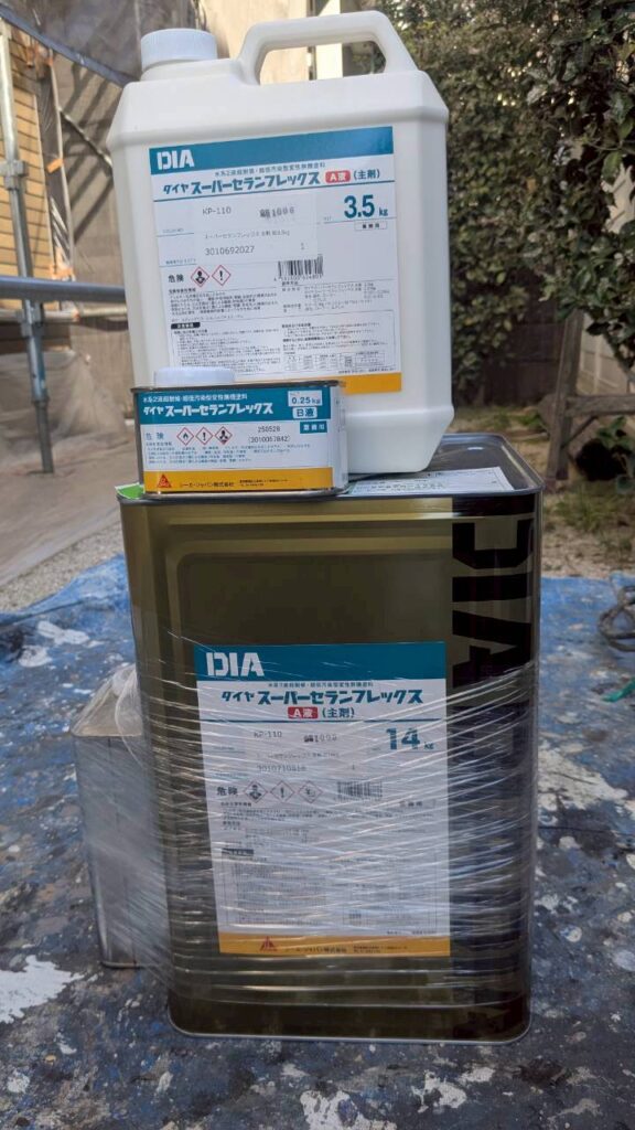 シーカ・ジャパン スーパーセランフレックスにて外壁の塗装を行っていきます。
