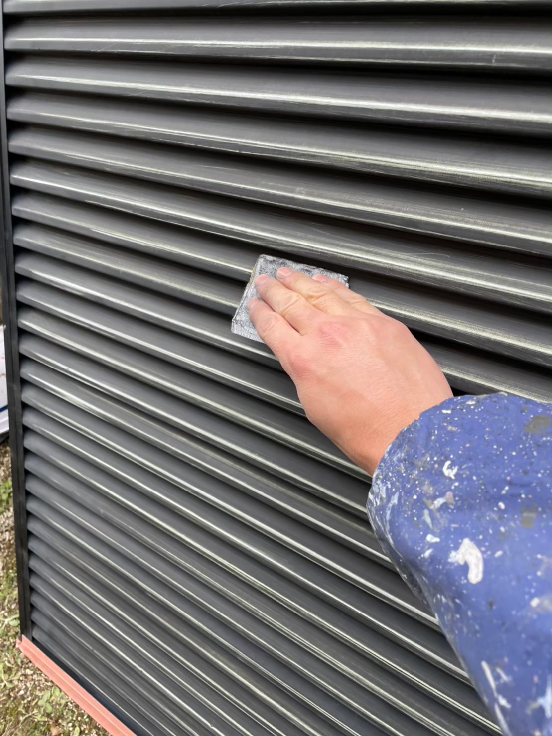 ケレンが完了しましたら、雨戸の養生作業を行い下地処理が完了となります。