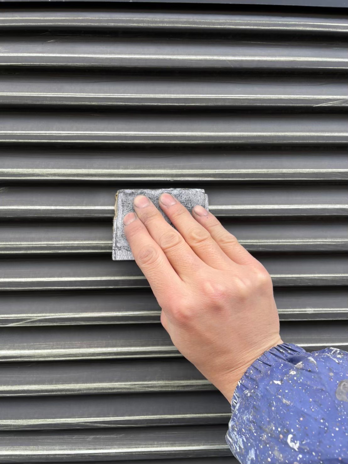 経年の劣化や錆の発生など、傷んだ雨戸をサンドペーパーにて雨戸の素地が均一になる様に整えていきます。