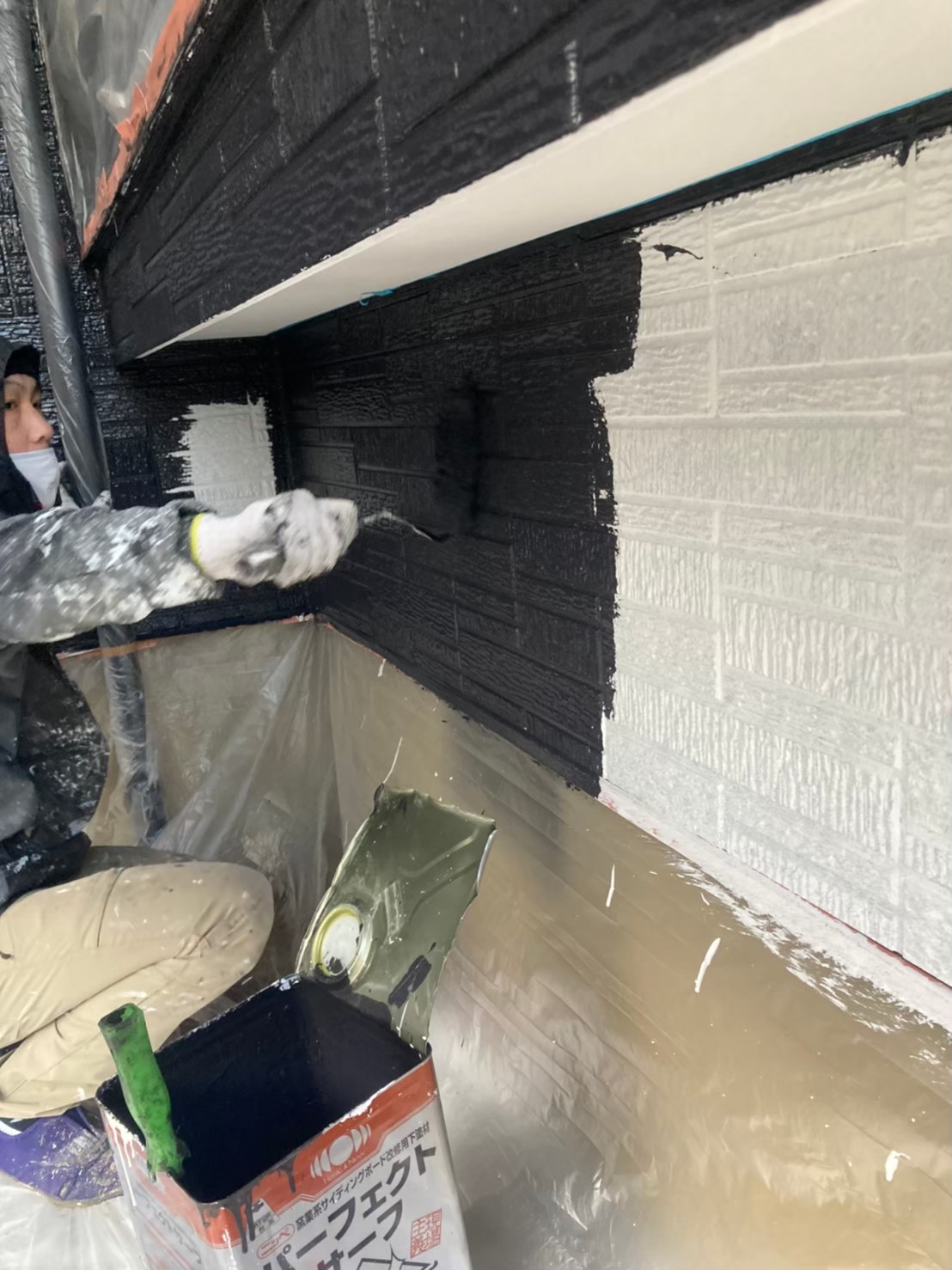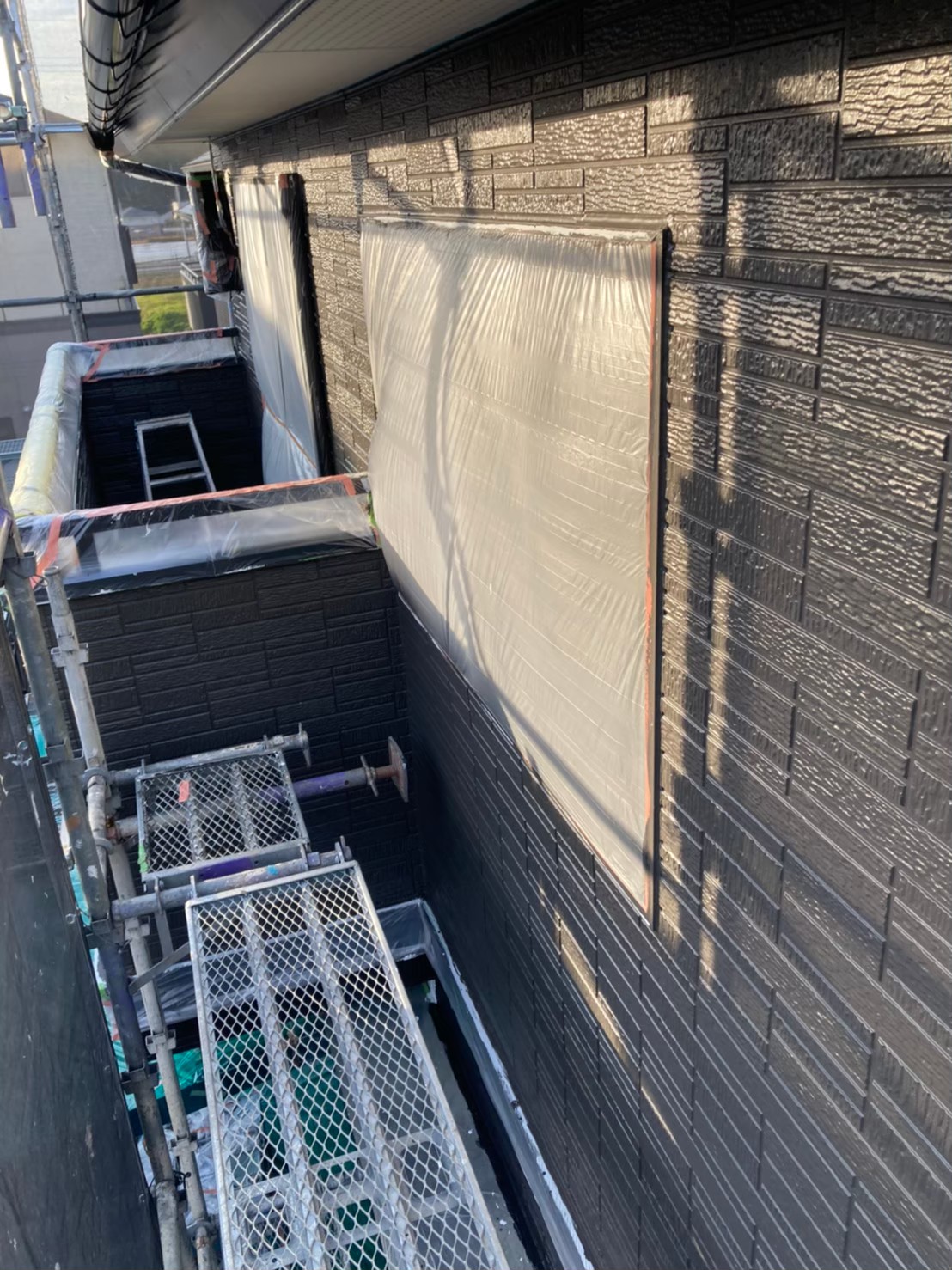 本日は外壁の中塗り、雨戸ケレン作業の様子をお伝えいたします。