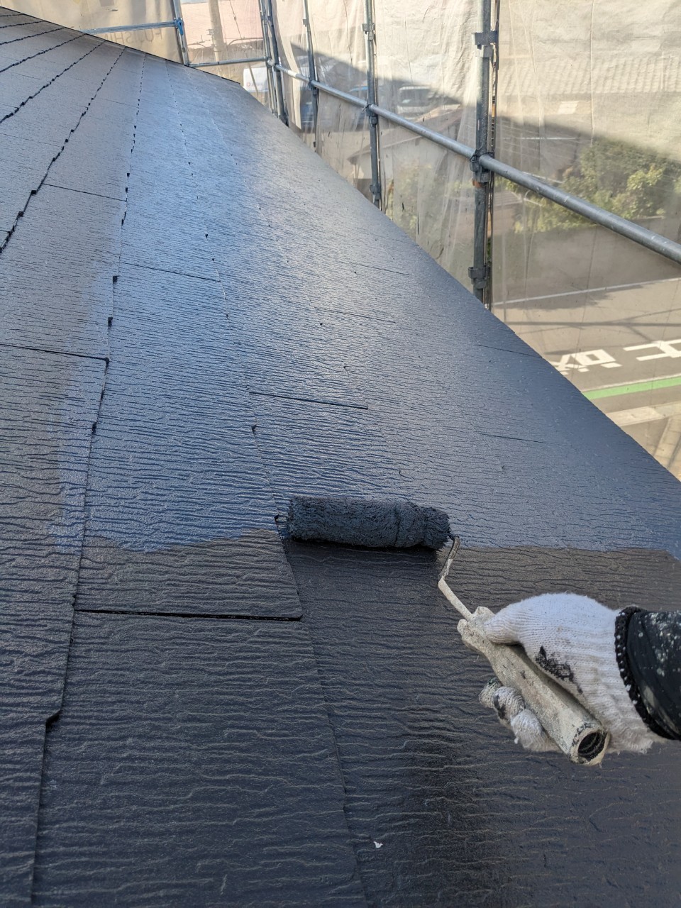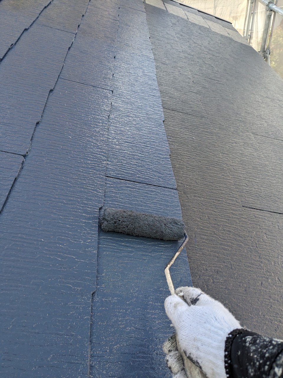 本日は屋根の上塗り、バルコニー床のトップコートの様子をお伝えいたします。