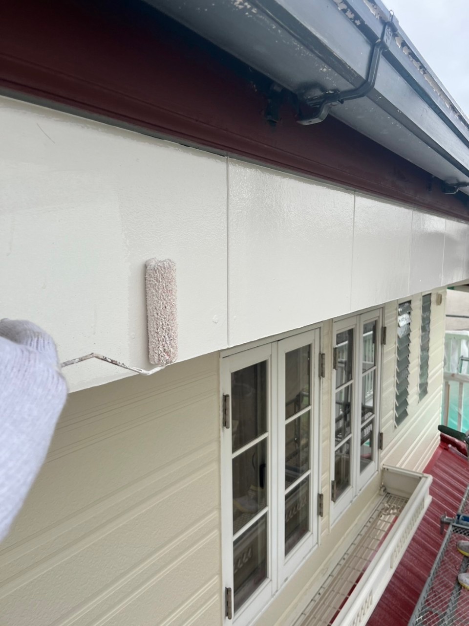 本日は屋根の上塗り、付帯部塗装の様子をお伝えいたします。