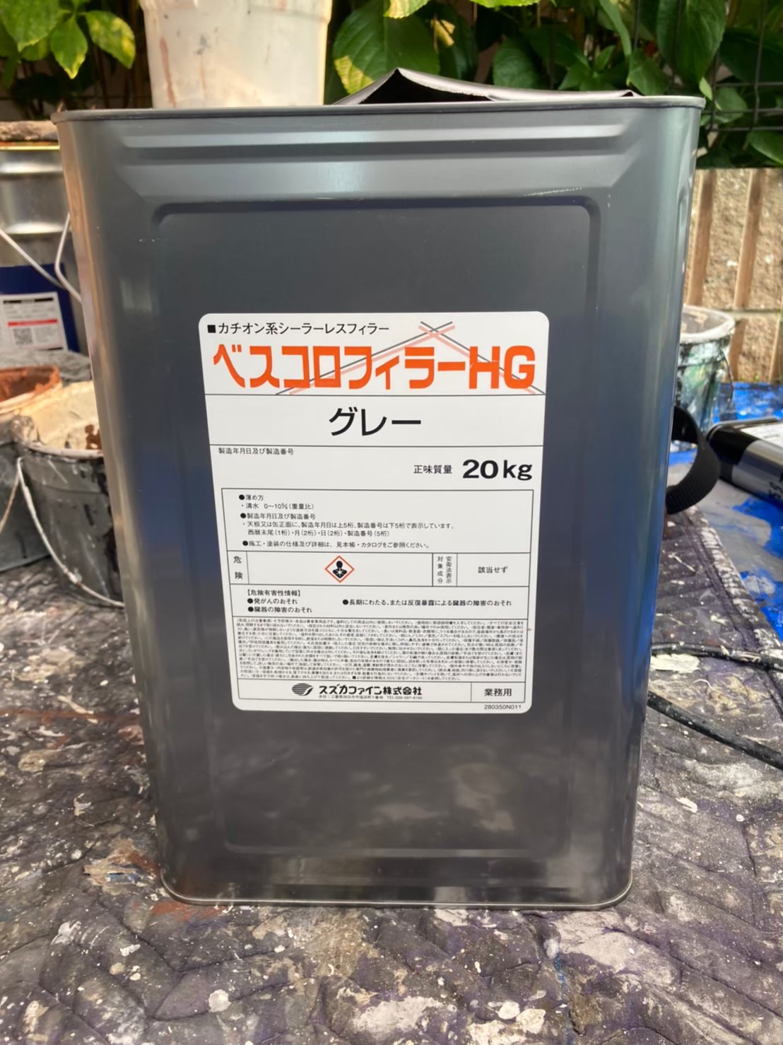 素地に劣化がある為、スズカファイン べスコロフィラーHG にて塗布を行っていきます。