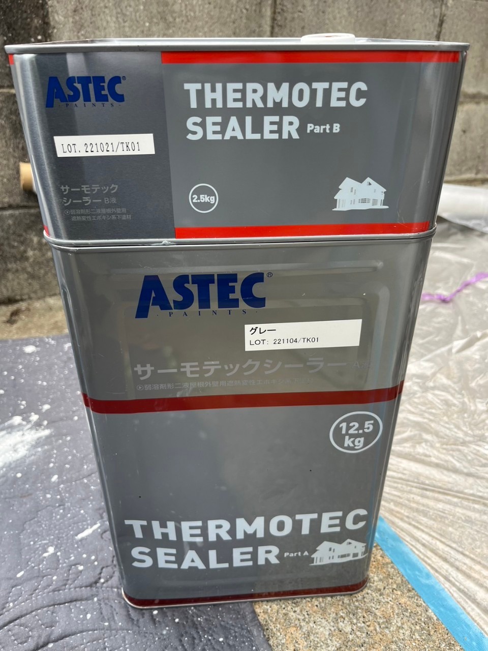 アステックペイント サーモテックシーラーにて屋根の下塗りを行っていきます。