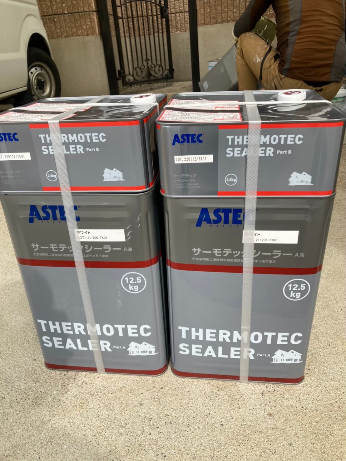 アステックペイント サーモテックシーラーにて屋根の下塗りを行っていきます。