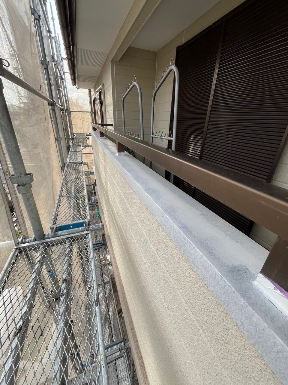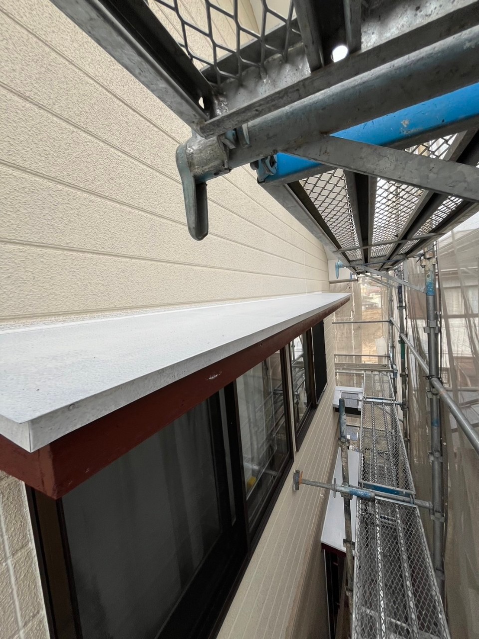 明日は付帯部塗装1回目、各所、養生作業を行います。