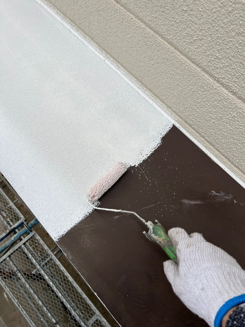 本日は屋根の錆止め塗装、鉄部錆止め塗装の様子をお伝えいたします。
