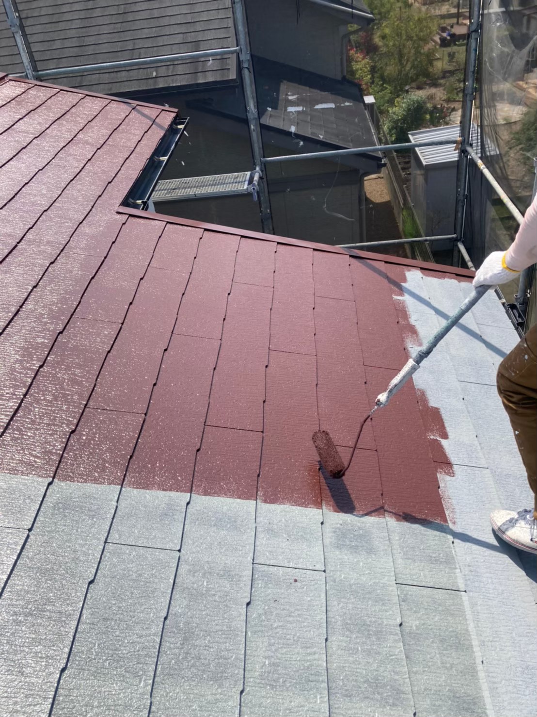 本日は屋根の中塗り、上塗りの様子をお伝えいたします。