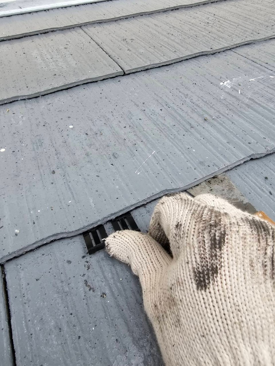 本日は屋根のタスペーサー処理(縁切り処理)、外壁の上塗りの様子をお伝えいたします。