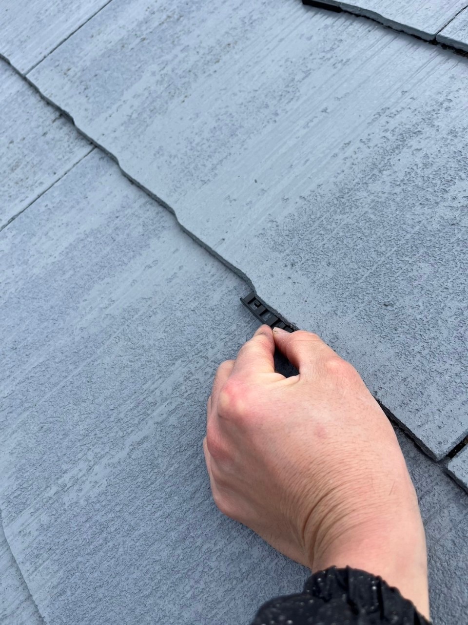 タスペーサーを使用して屋根の縁切り処理を行っていきます。