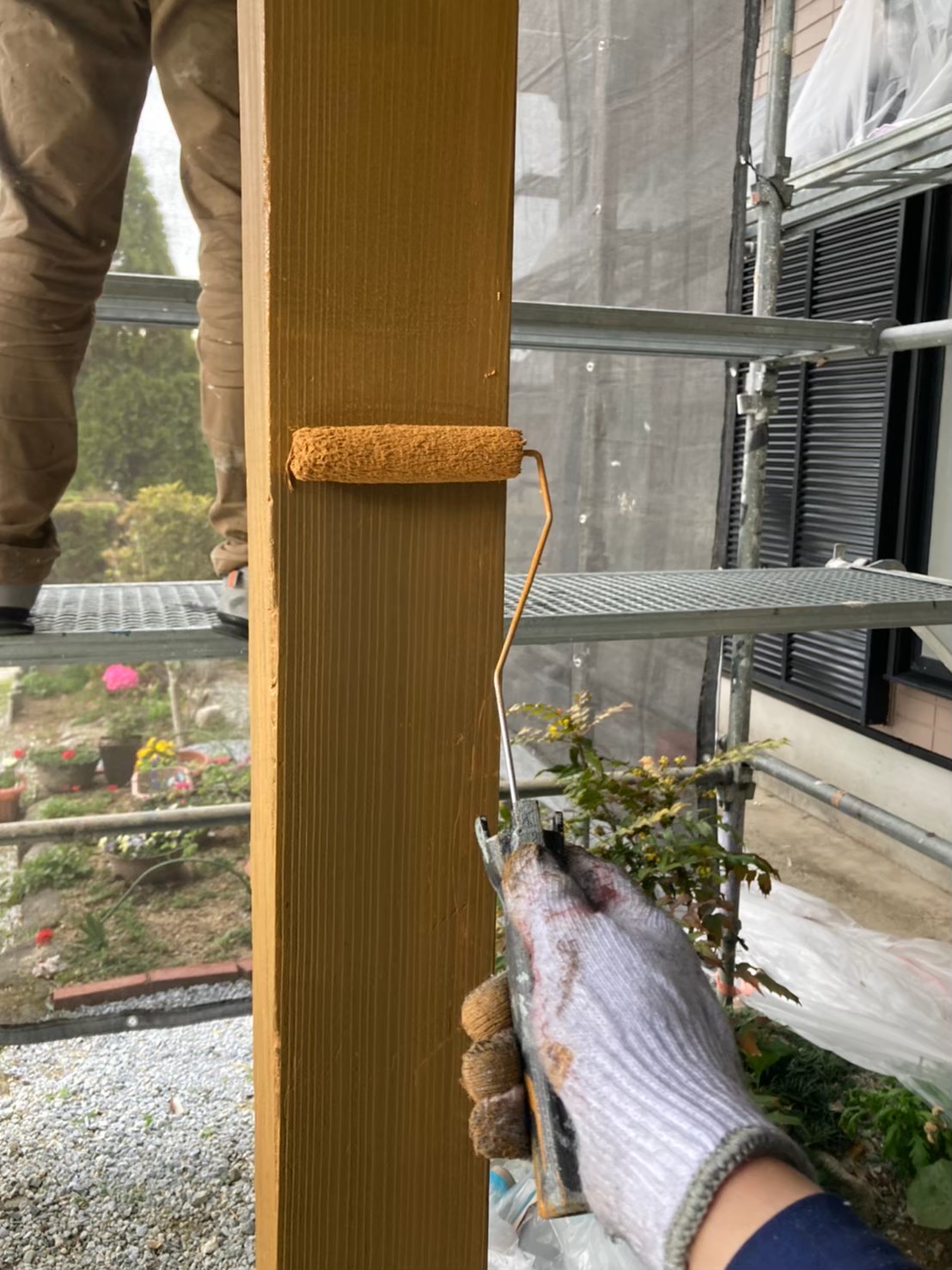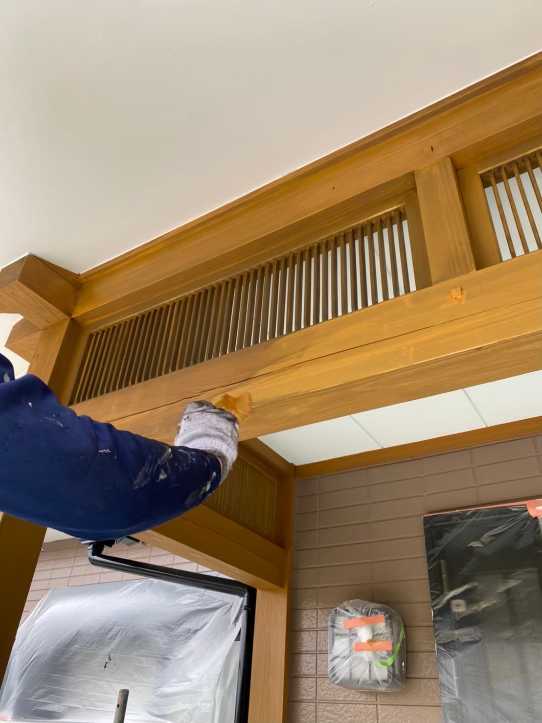 本日は玄関の木部塗装、各所の手直しの様子をお伝えいたします。