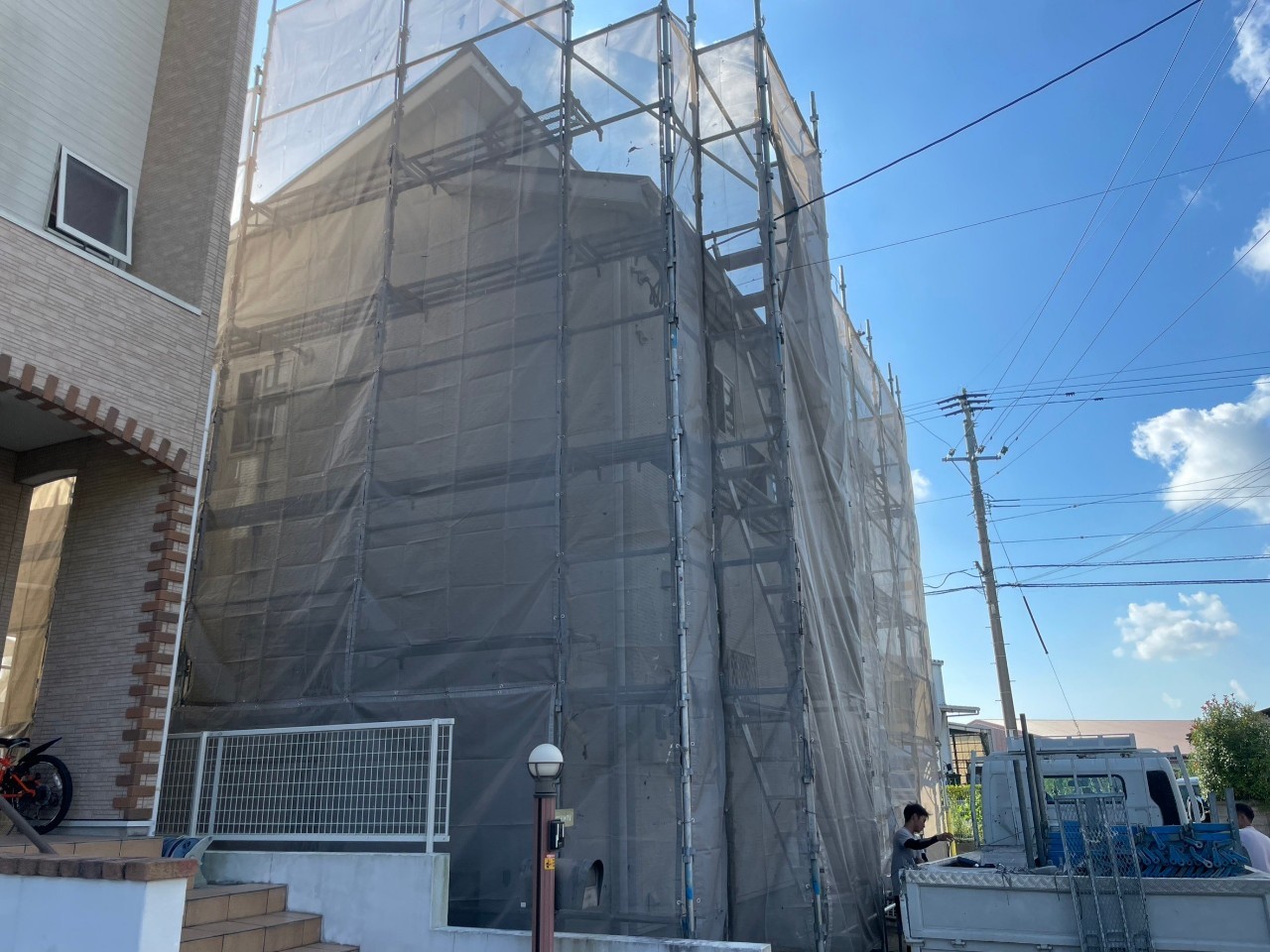 本日は須恵町にて足場組立の様子をお伝えいたします。