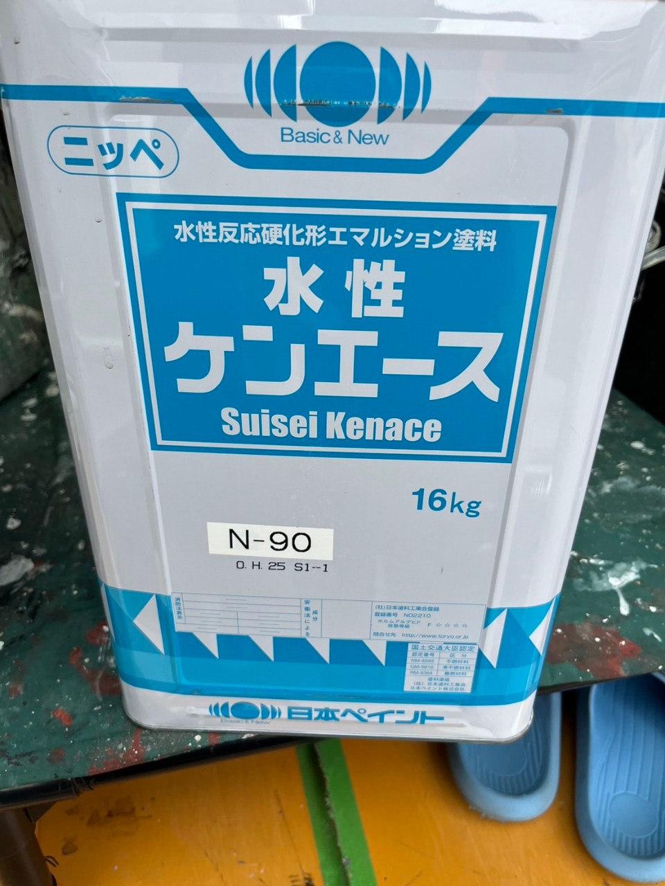 日本ペイント 水性ケンエースにて軒天井の塗装を行って行きます。