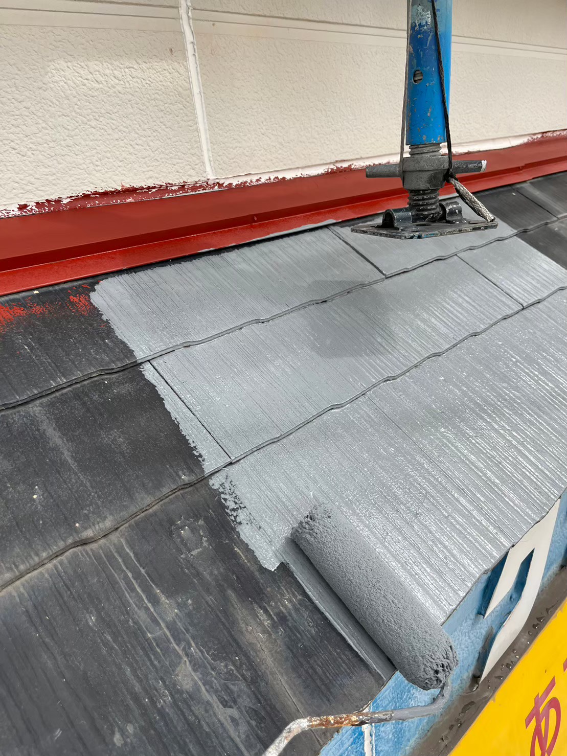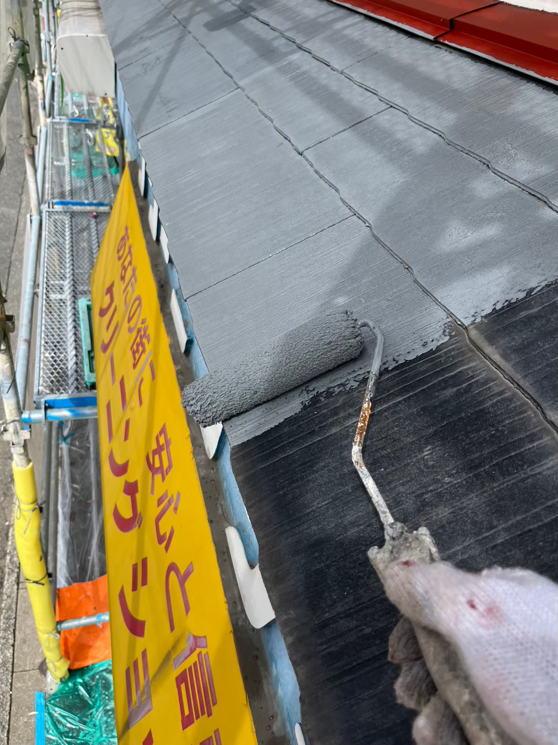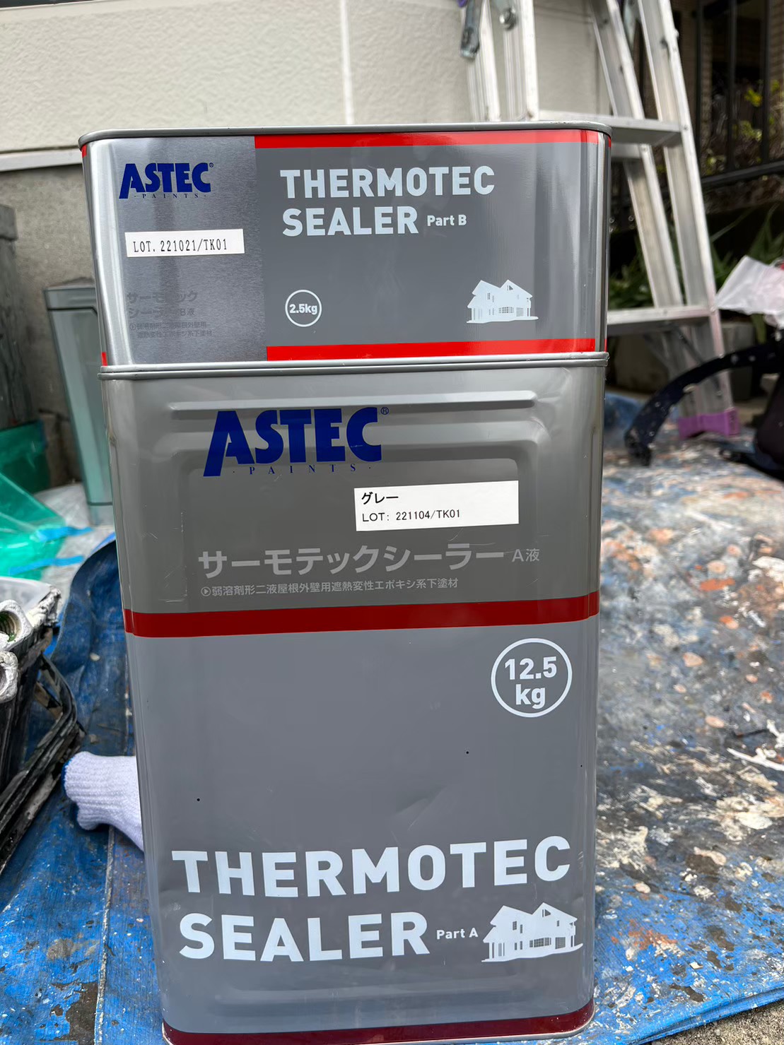 アステックペイント サーモテックシーラーにて屋根の下塗りを行っていきます。