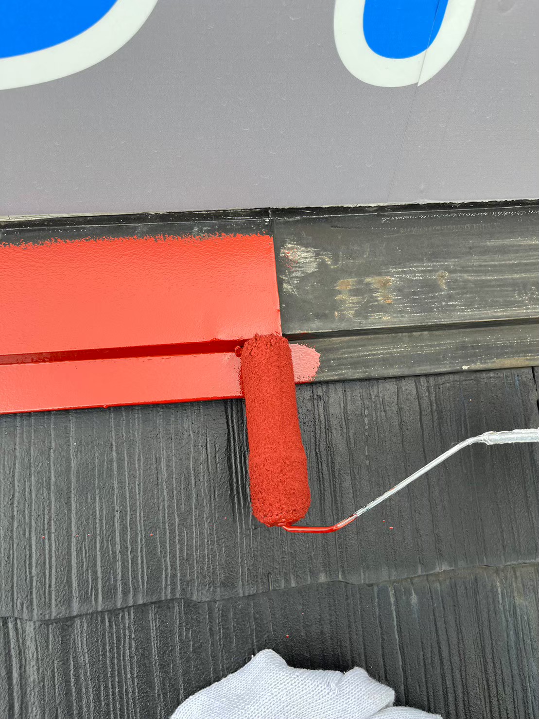 本日は鉄部の錆止め塗装、屋根の下塗りの様子をお伝えいたします。