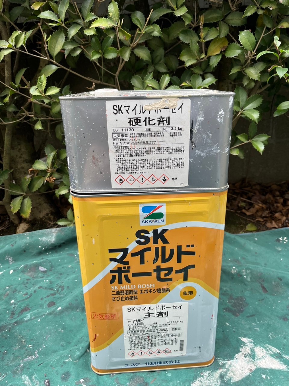 エスケー化研 SKマイルドボーセイを使用して錆止め塗装を行っていきます。