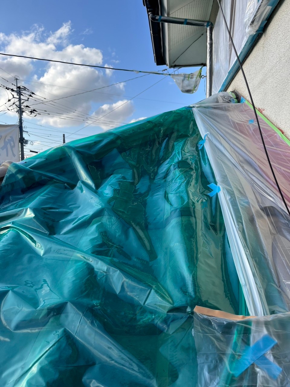 シワやビニールにたるみが無いようにしっかりと養生を行っていきます。