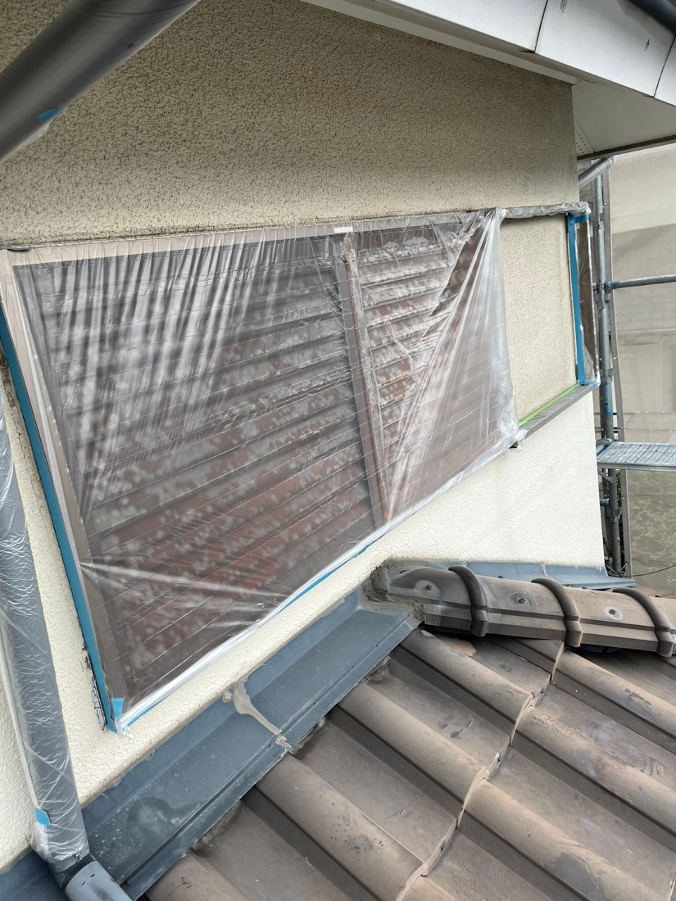 養生を行うと窓の開閉が出来なくなりますが、しっかりとした塗装を行う為の重要な作業となります。