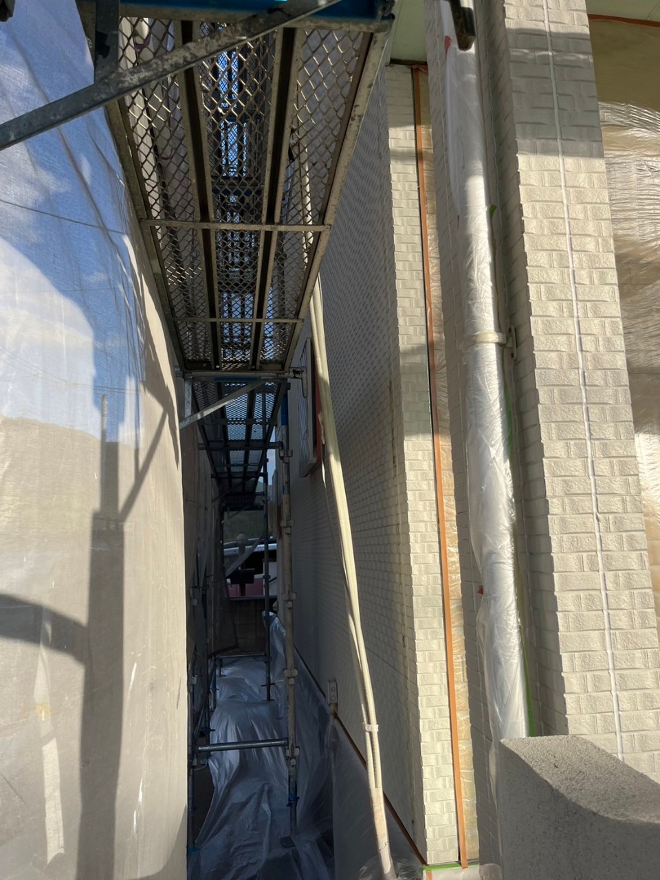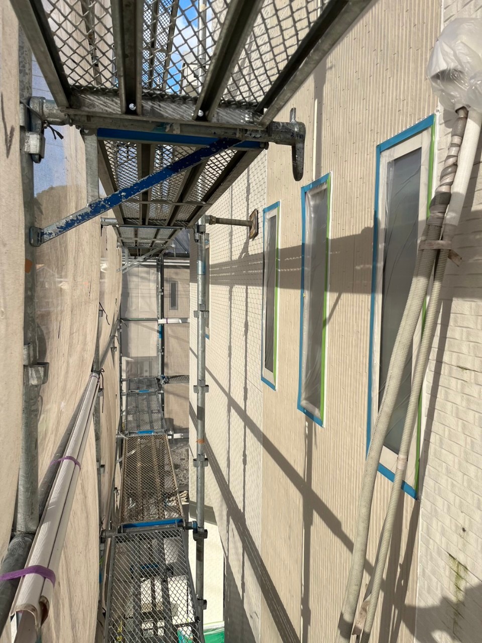 本日は鉄部の錆止め塗装、各所、養生作業の様子をお伝えいたします。