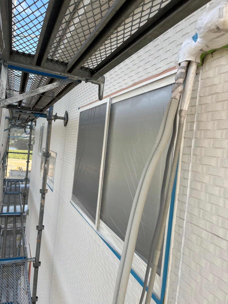 養生を行うと窓の開閉が出来なくなりますが、しっかりとした塗装を行う為の重要な作業となります。