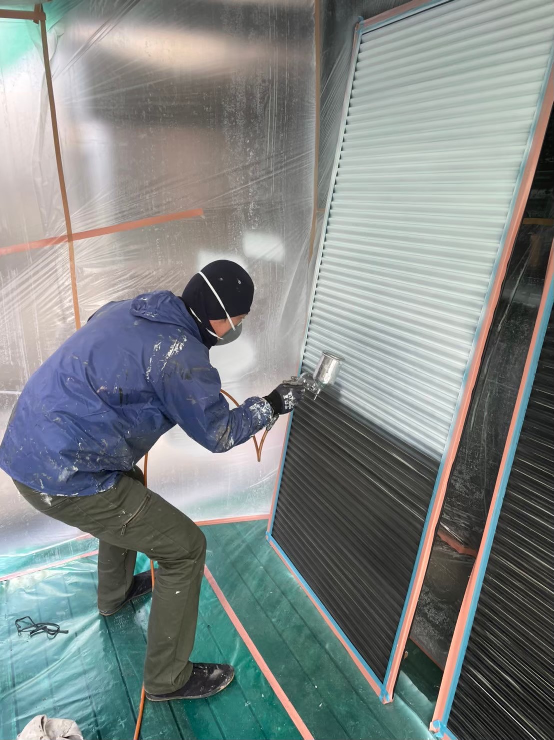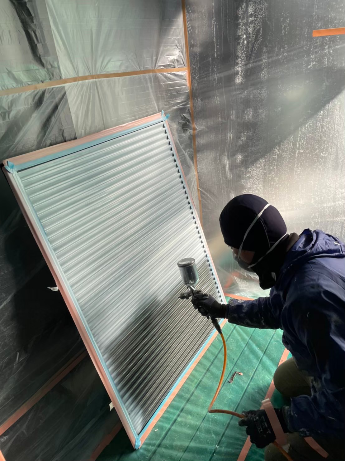 乾燥後クリーンマイルドシリコンにて中塗り、上塗りと塗布を行っていきます。