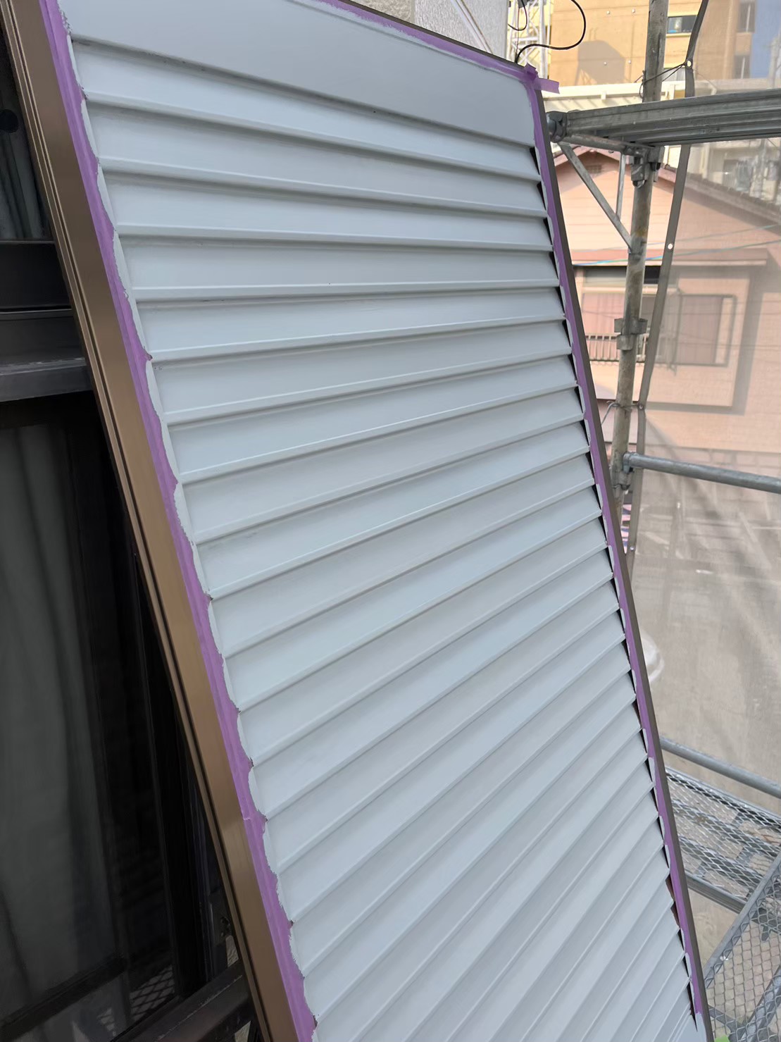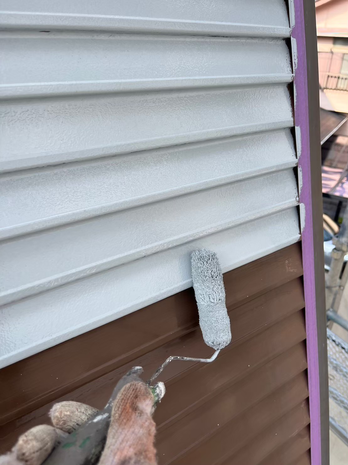 本日は雨戸の錆止め塗装、屋根の中塗り、上塗りの様子をお伝えいたします。