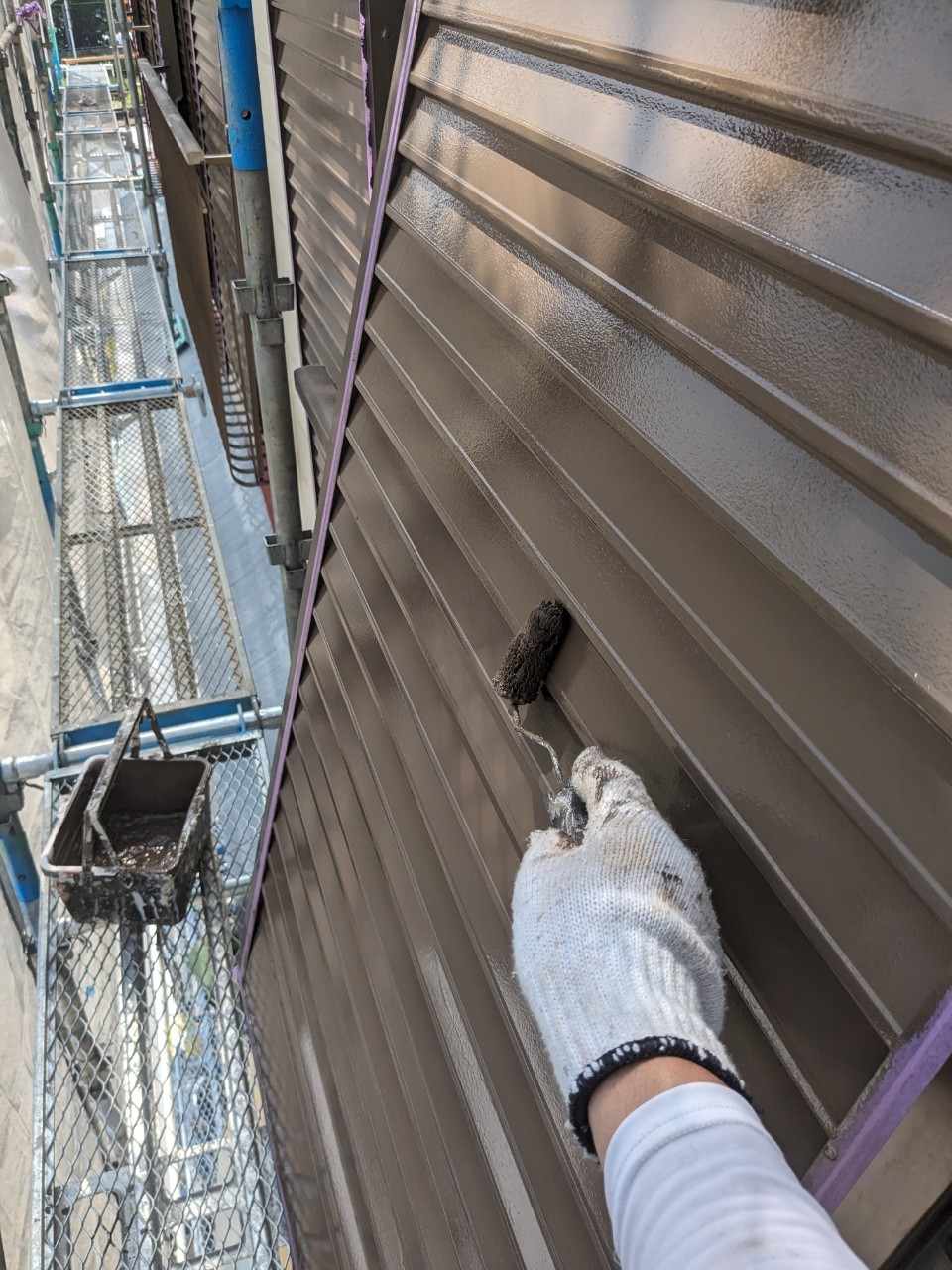 中塗りの乾燥後に上塗りを行っていきます。