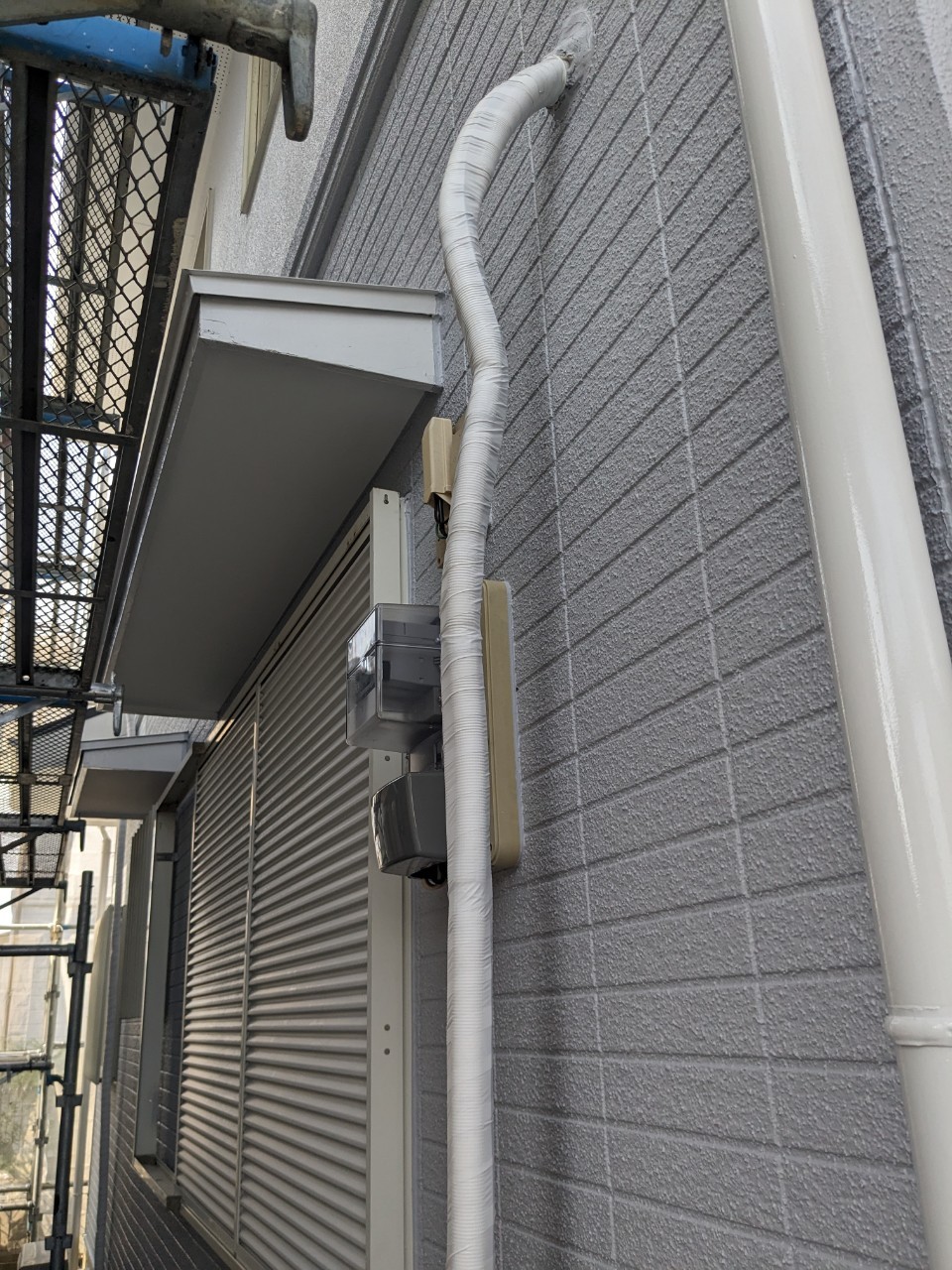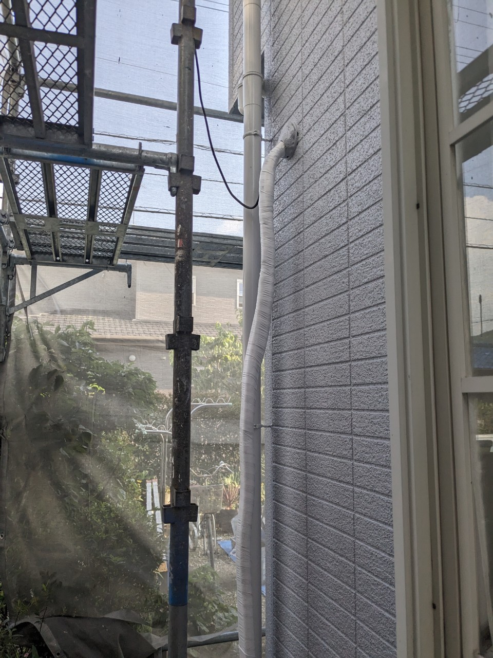 ダクトホースの巻き直しや外壁のタッチアップなどを行っていきます。