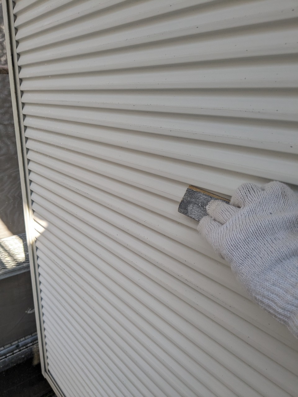 本日は雨戸のケレン作業、錆止め塗装の様子をお伝えいたします。