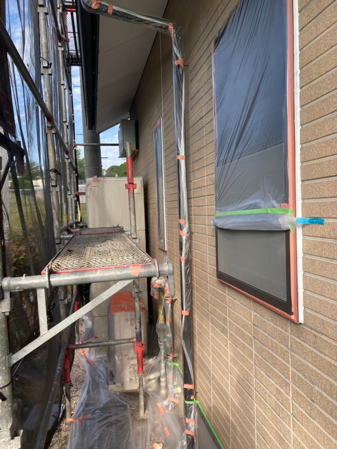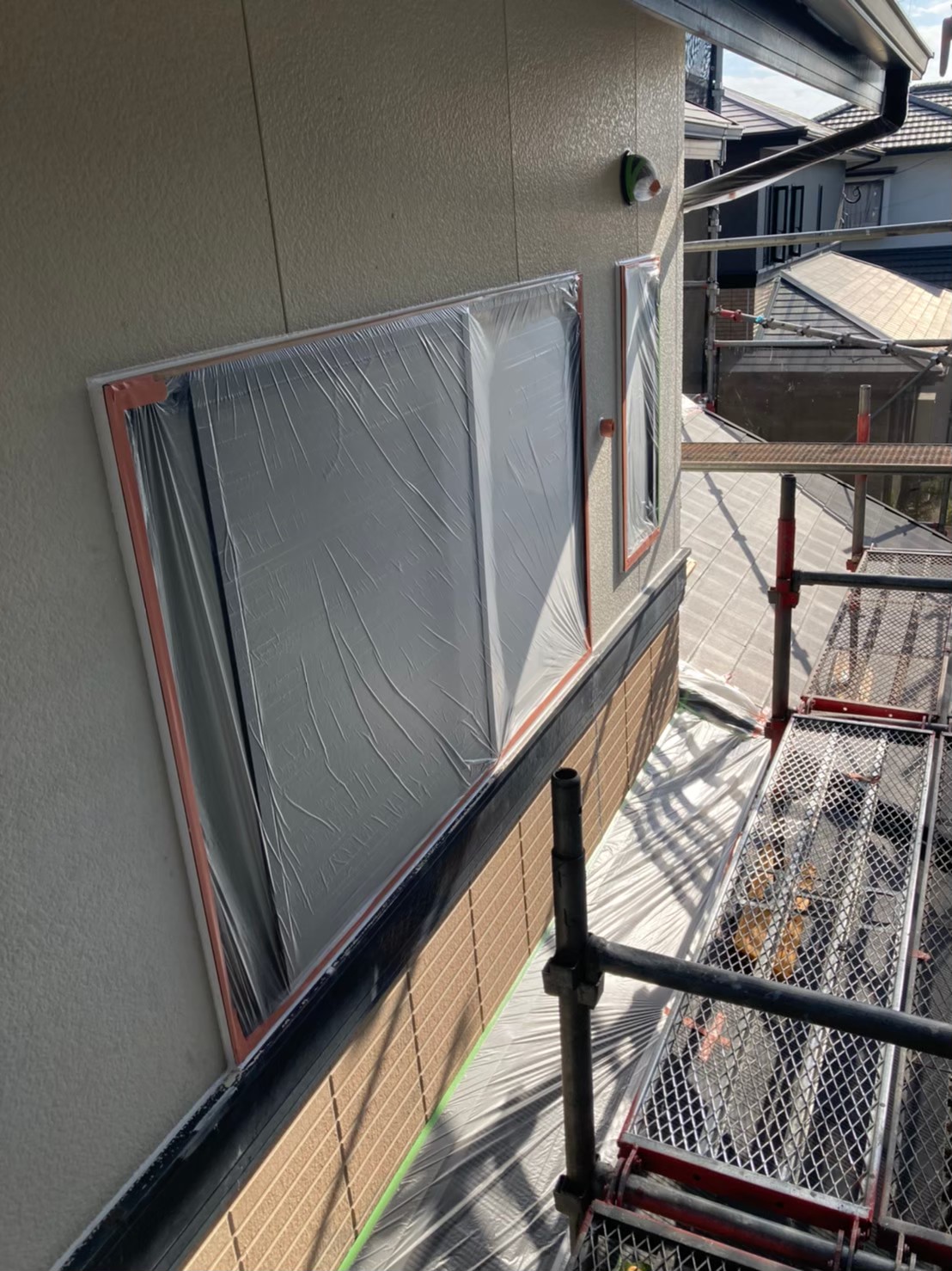 養生を行うと窓の開閉が出来なくなりますが、しっかりとした塗装を行う為の重要な作業となります。