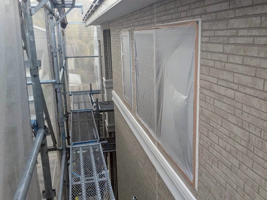 ビニールがシワにならない様にしっかりと養生を行っていきます。