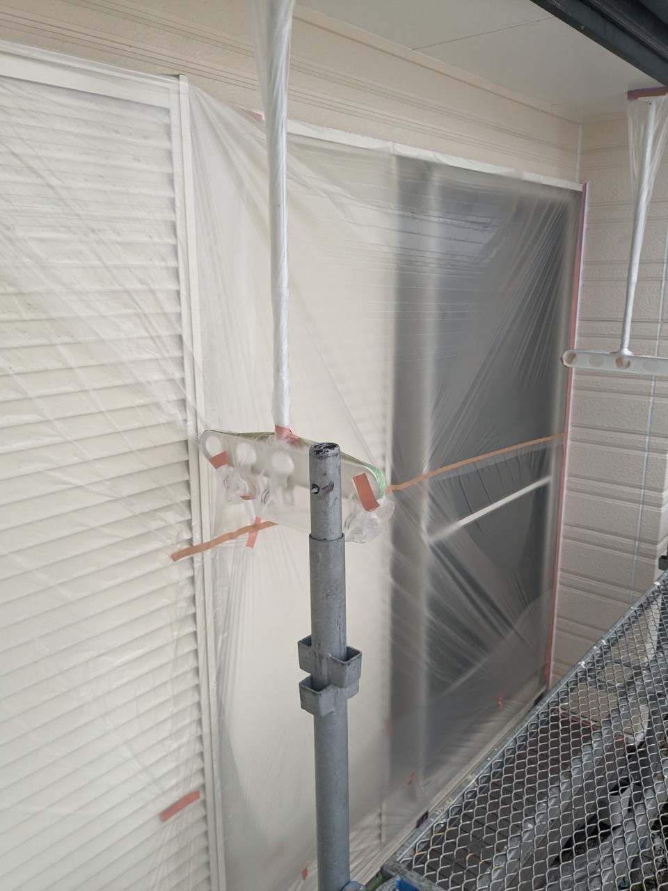 シワやビニールのたるみが無いようにしっかりと養生を行っていきます。