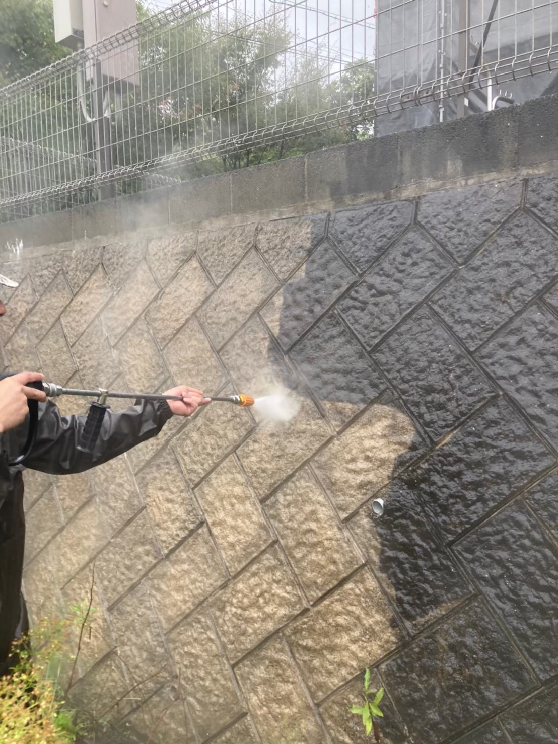 土間や塀などもしっかりと洗浄を行い、高圧洗浄は完了となります。