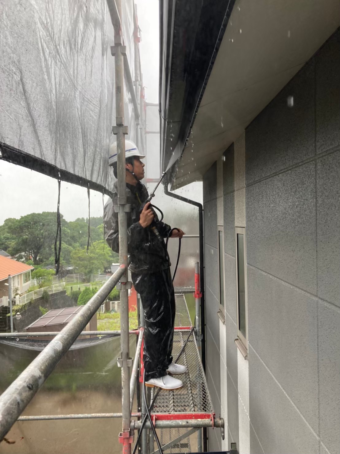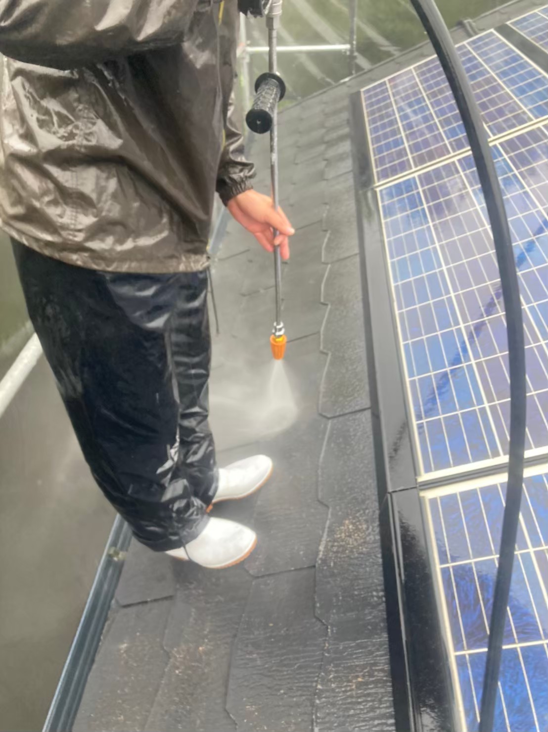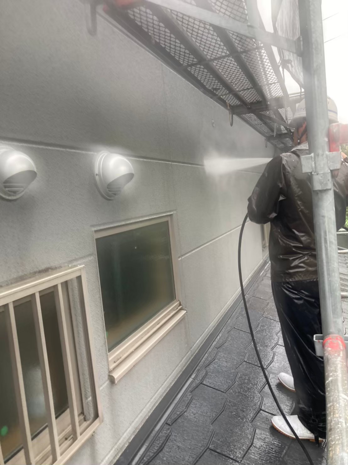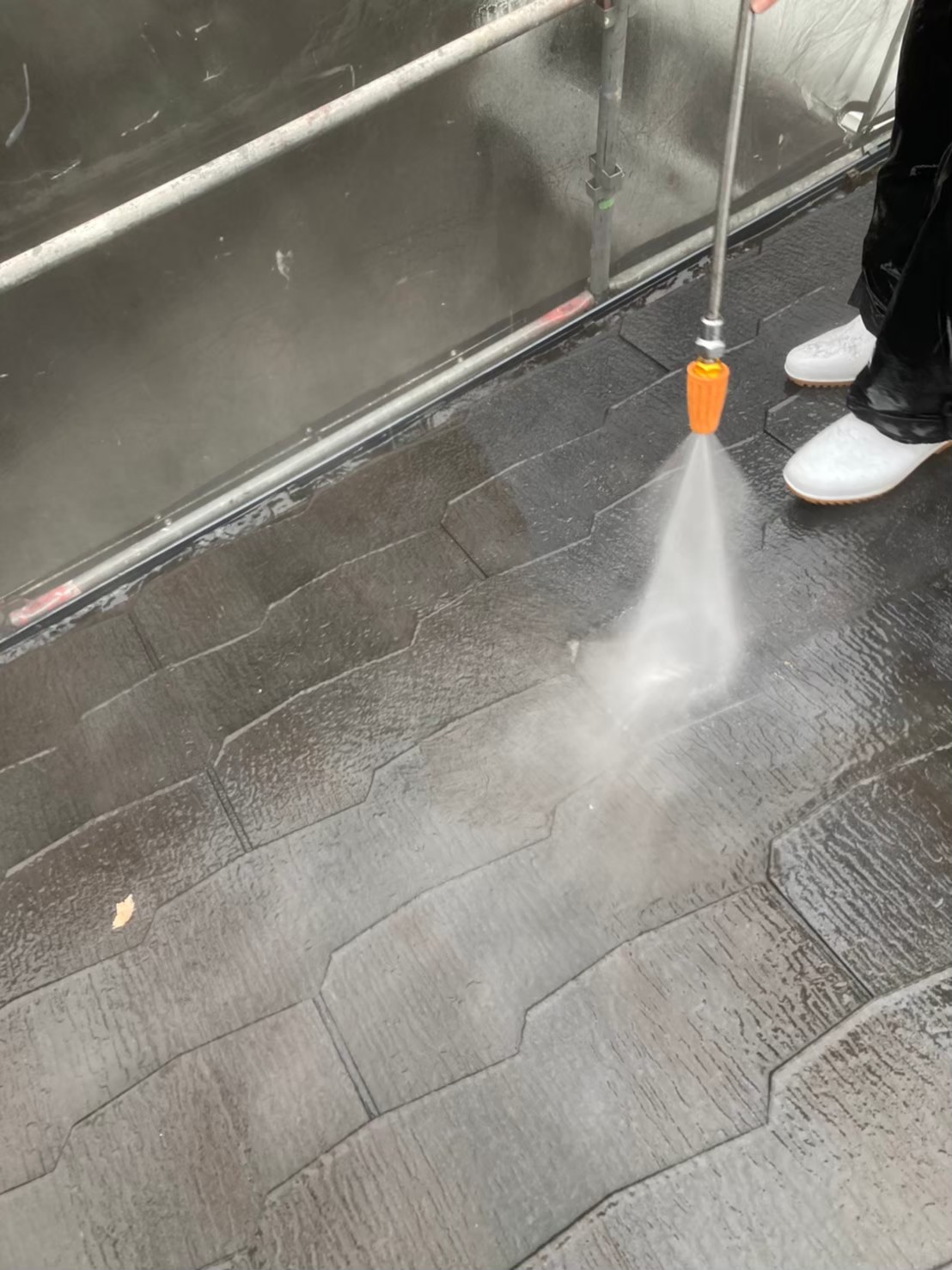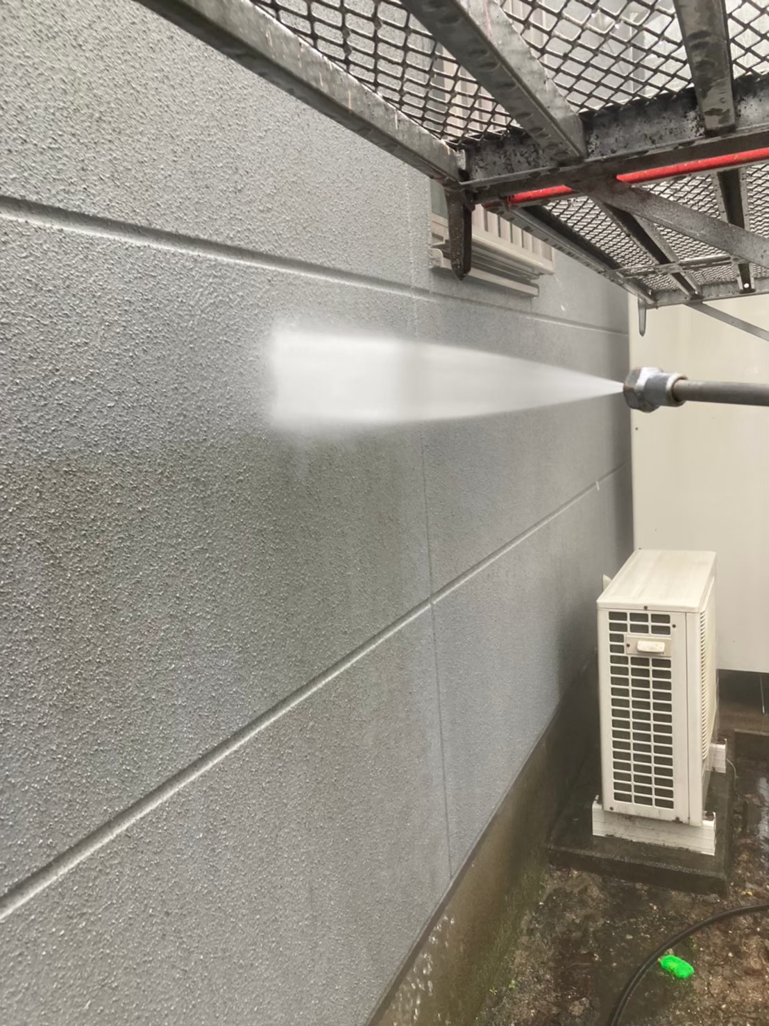 外壁も藻やチョーキングをしっかりと落としていきます。