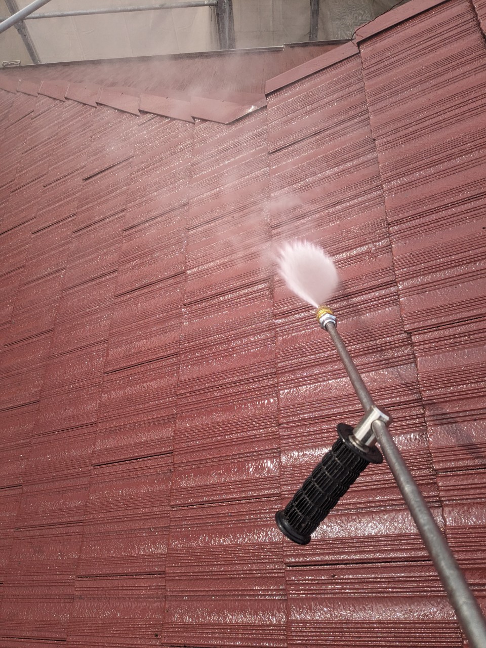 チョーキングや経年の汚れ、コケなどもしっかりと洗い流していきます。