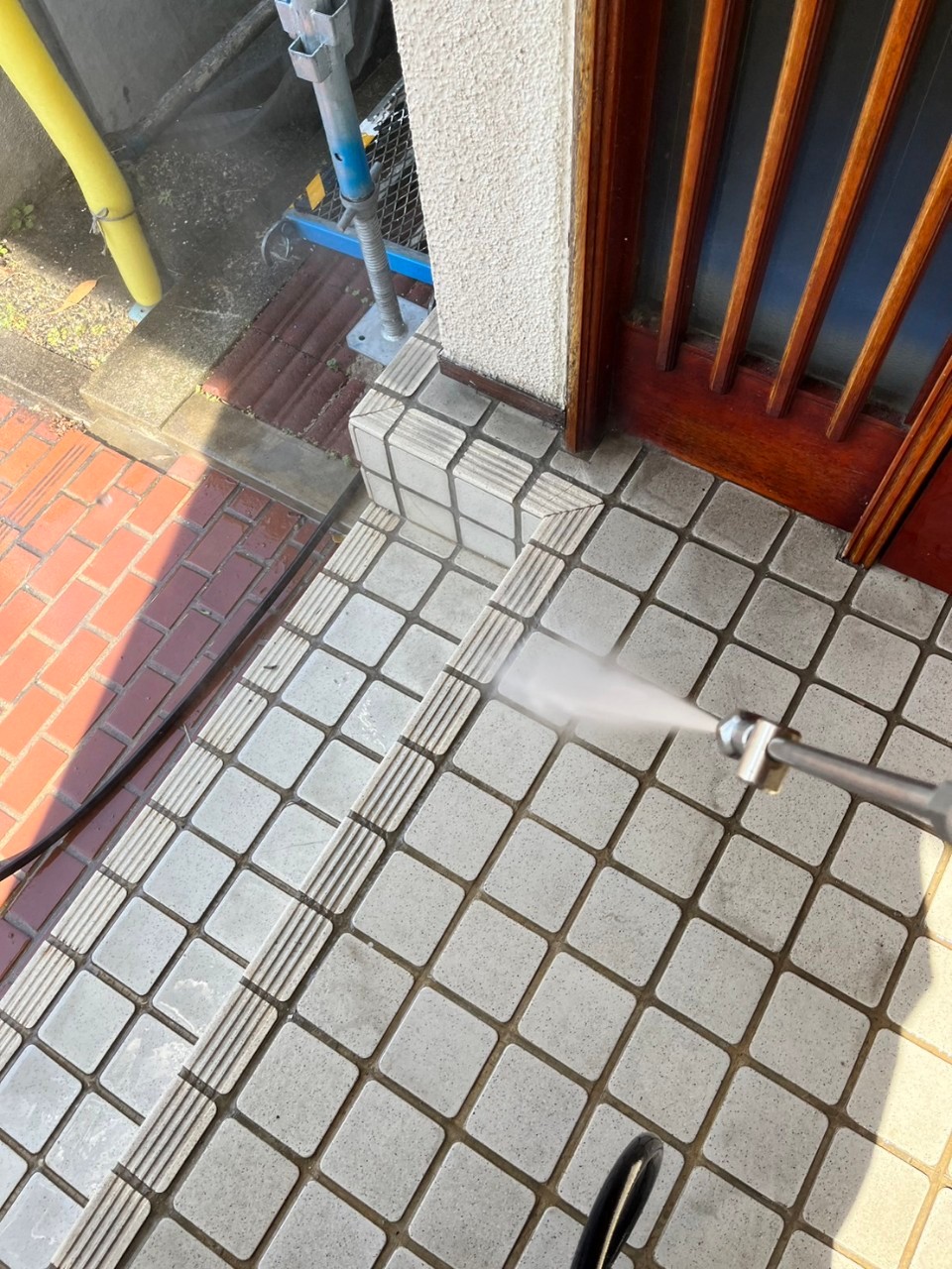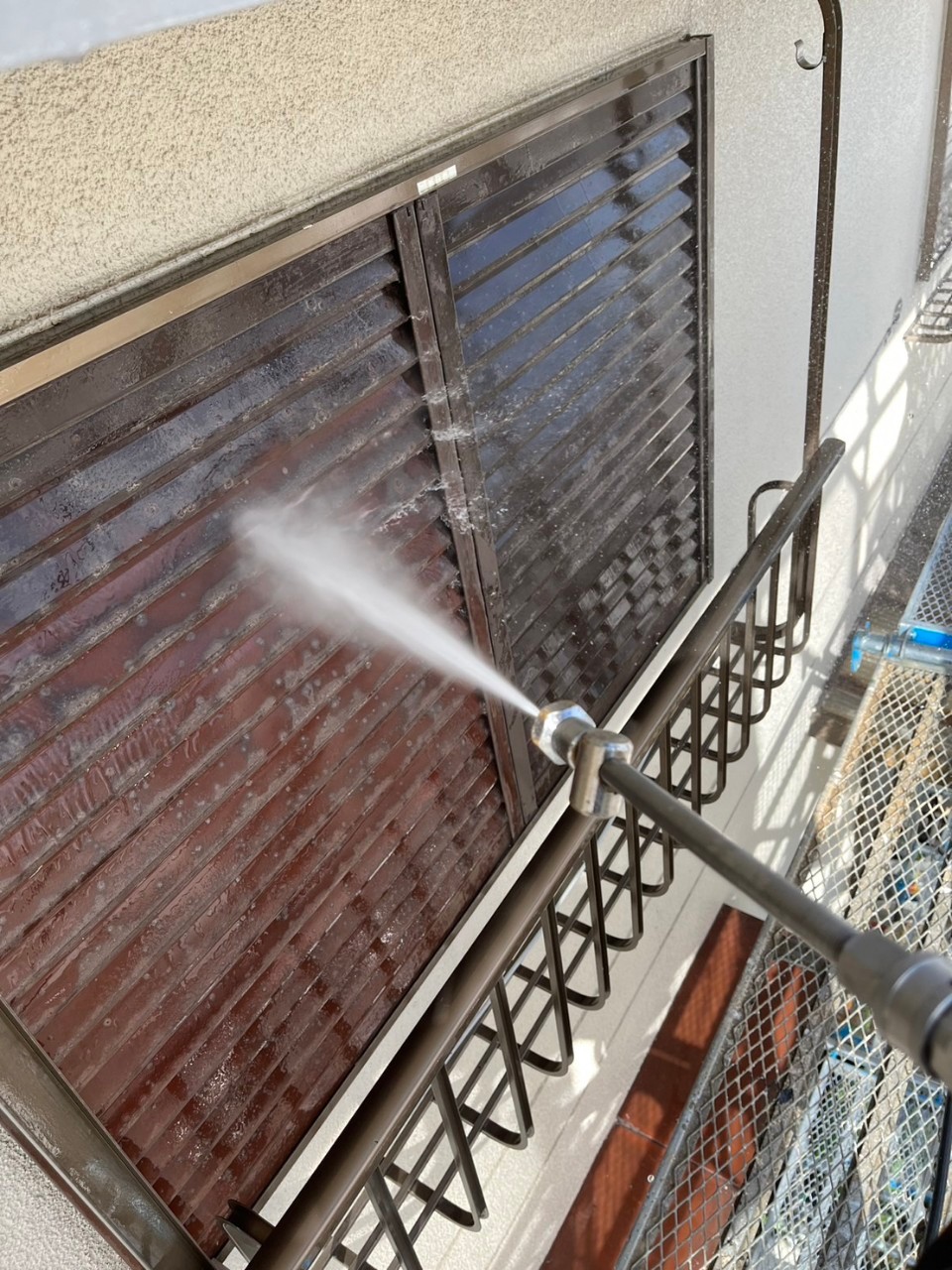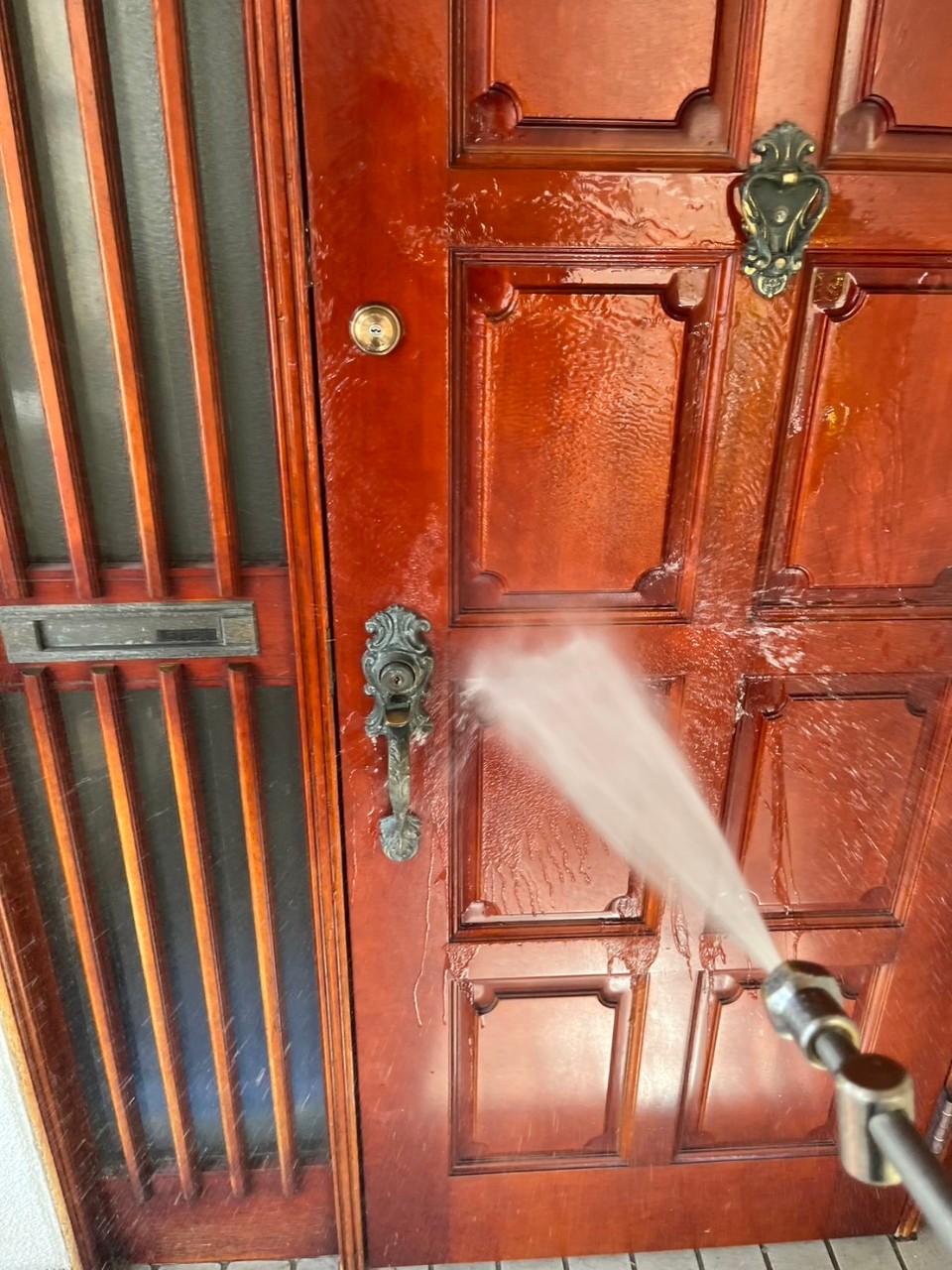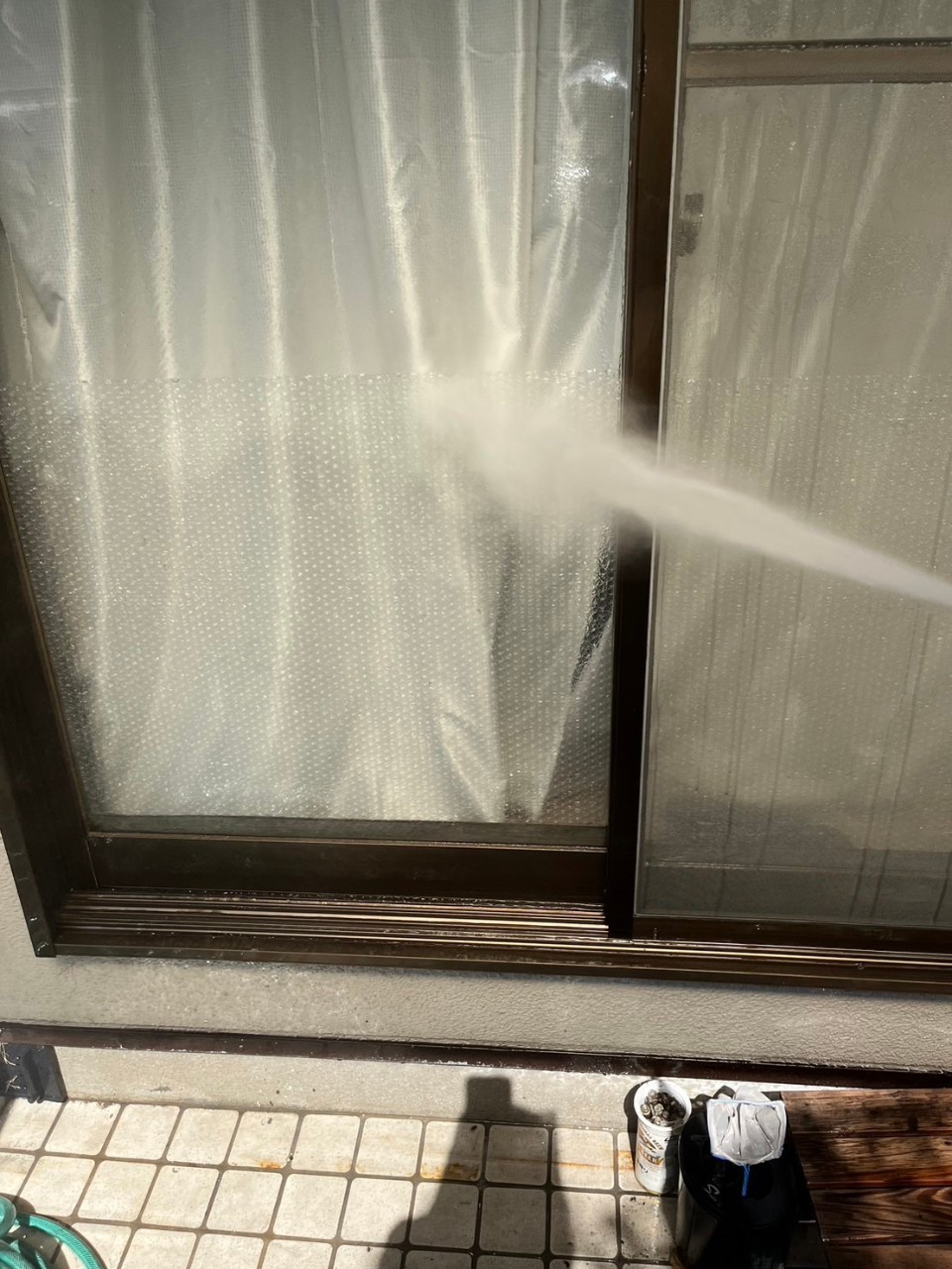 洗浄が不十分な場合は早期の剥離などに繋がり易いため、コケ、経年の汚れ、チョーキングなどもしっかりと洗い流していきます。