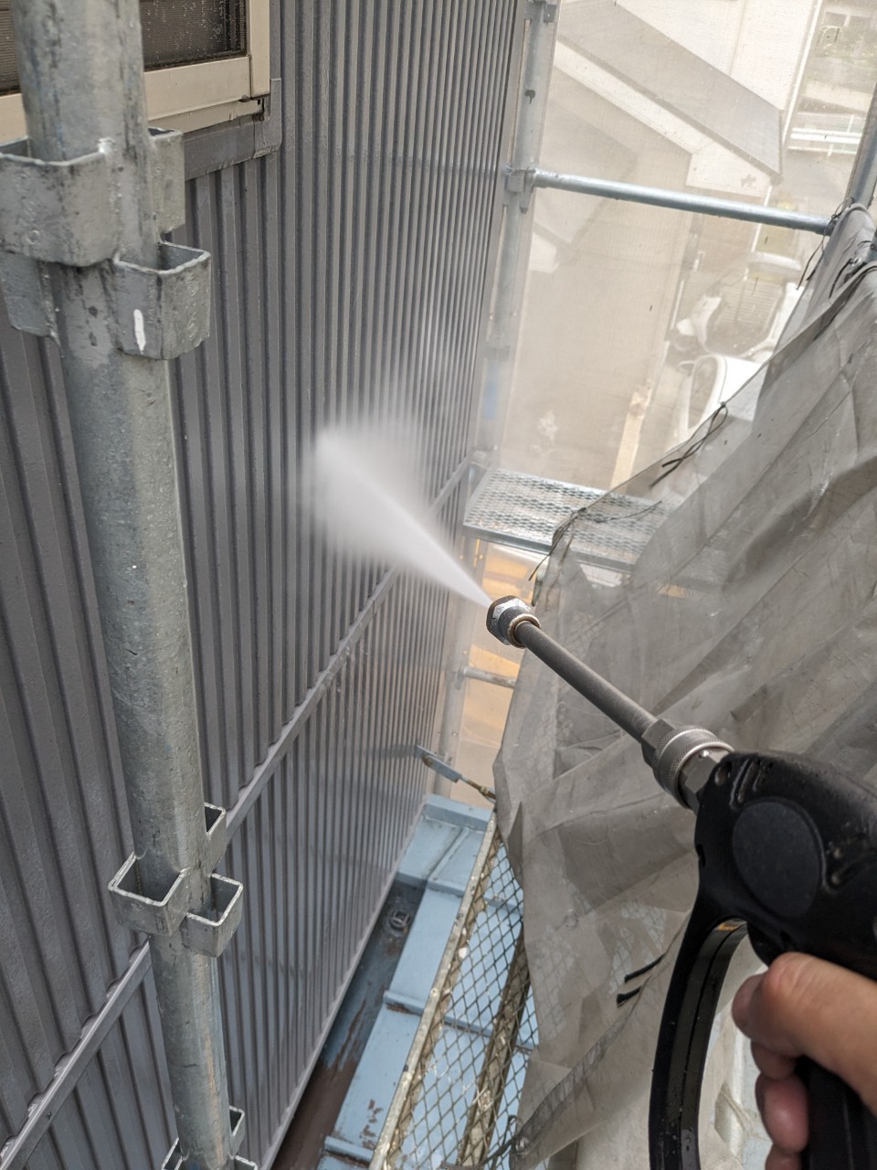 本日は大野城市の現場にて、高圧洗浄の様子をお伝えいたします。