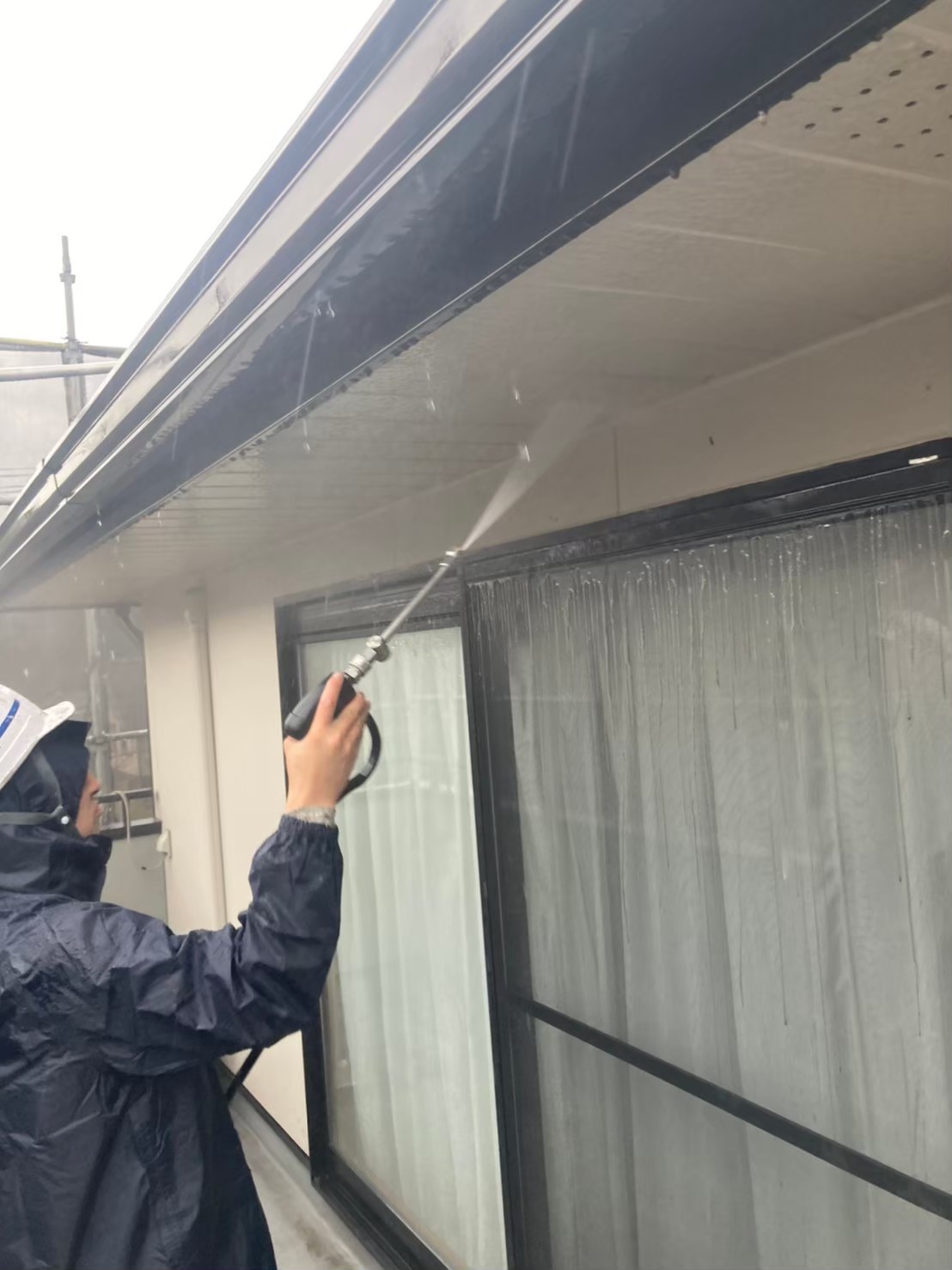 屋根が完了し、外壁の洗浄を行っていきます。