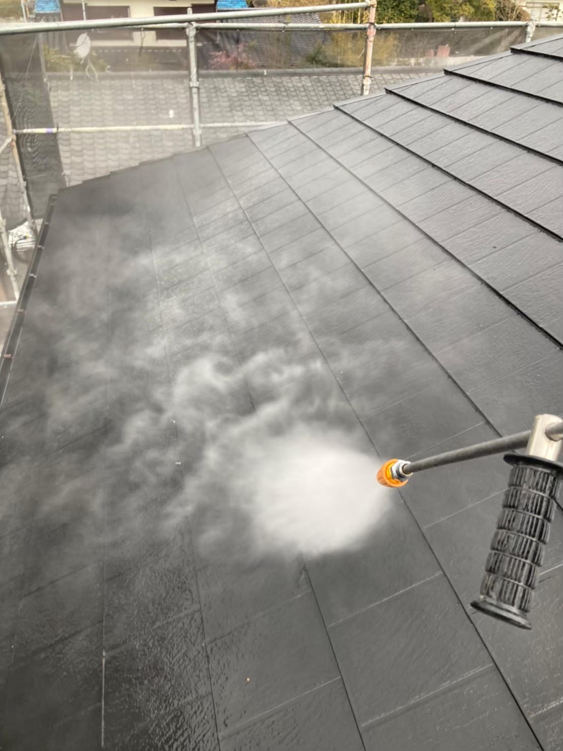 まずは屋根から洗浄を行っていきます。