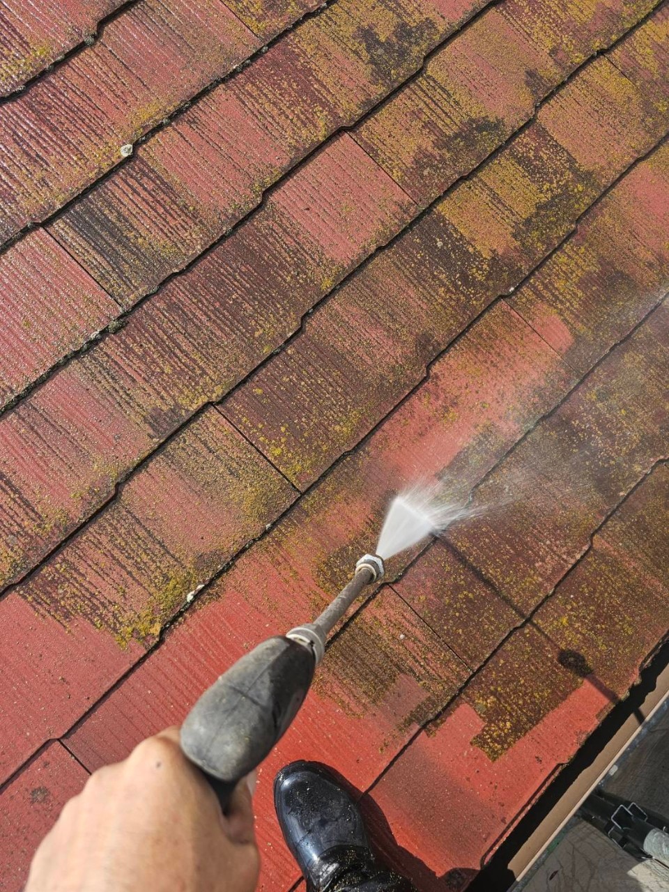 屋根などは特に苔が多く発生する為、入念な洗浄を行います。