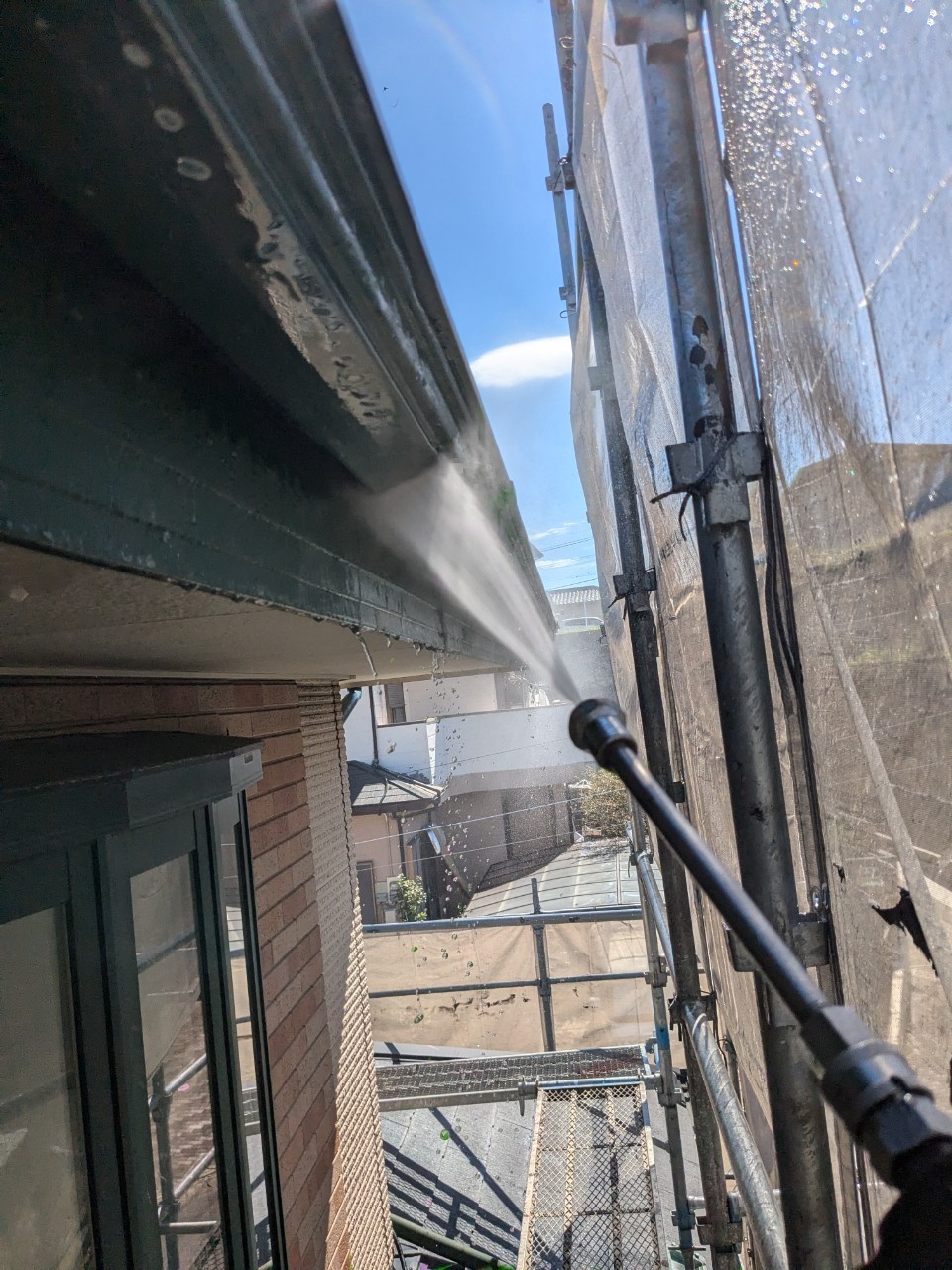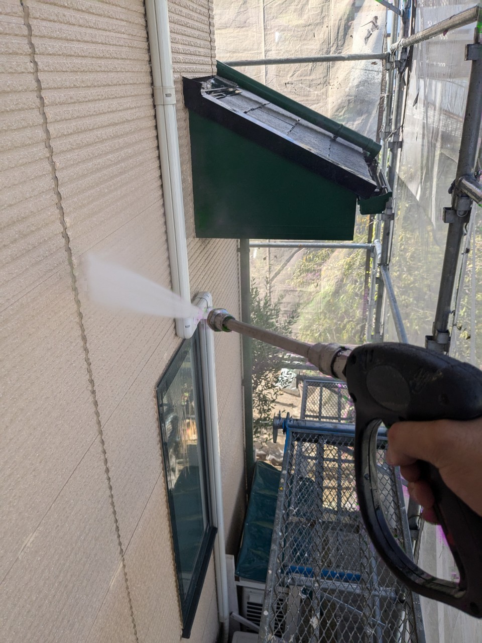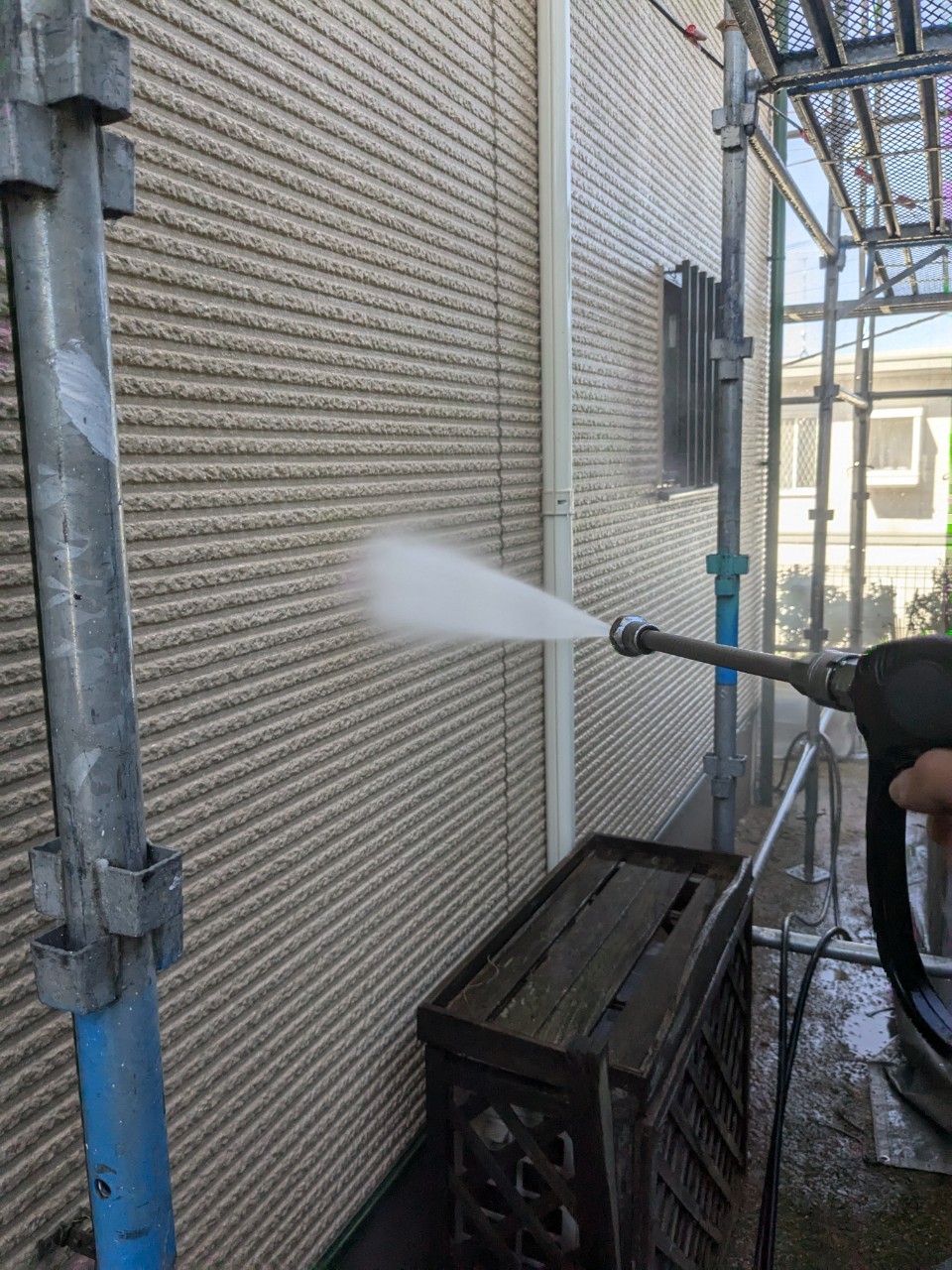 塗り替えない場合、カラーベストの屋根に高圧洗浄を行ってしまうと素地が剥がれてしまう恐れがある為、屋根は洗い流す程度での洗浄を行っております。
