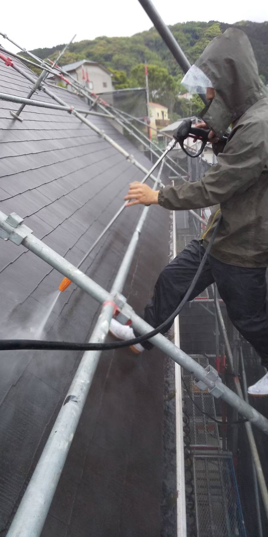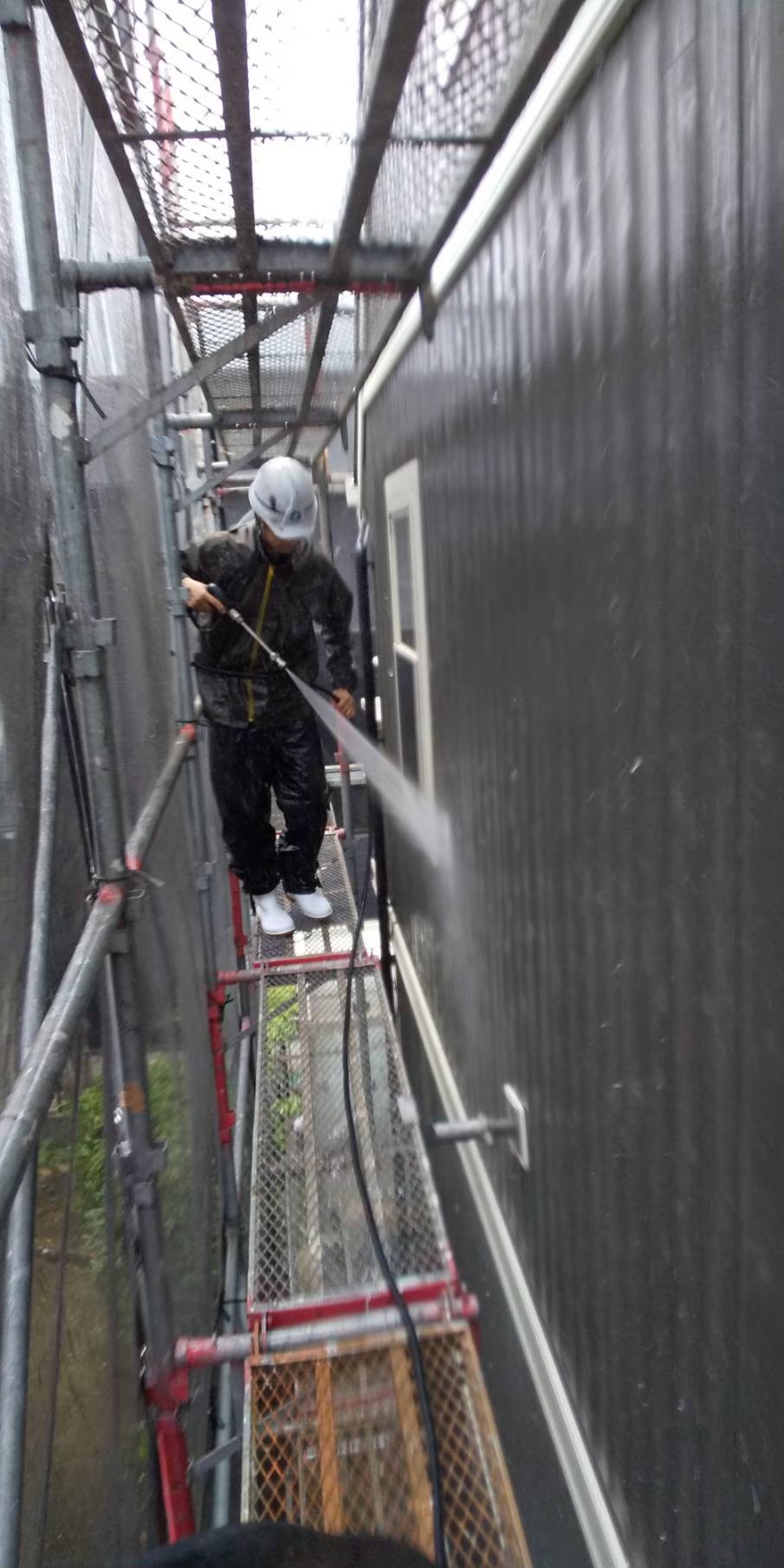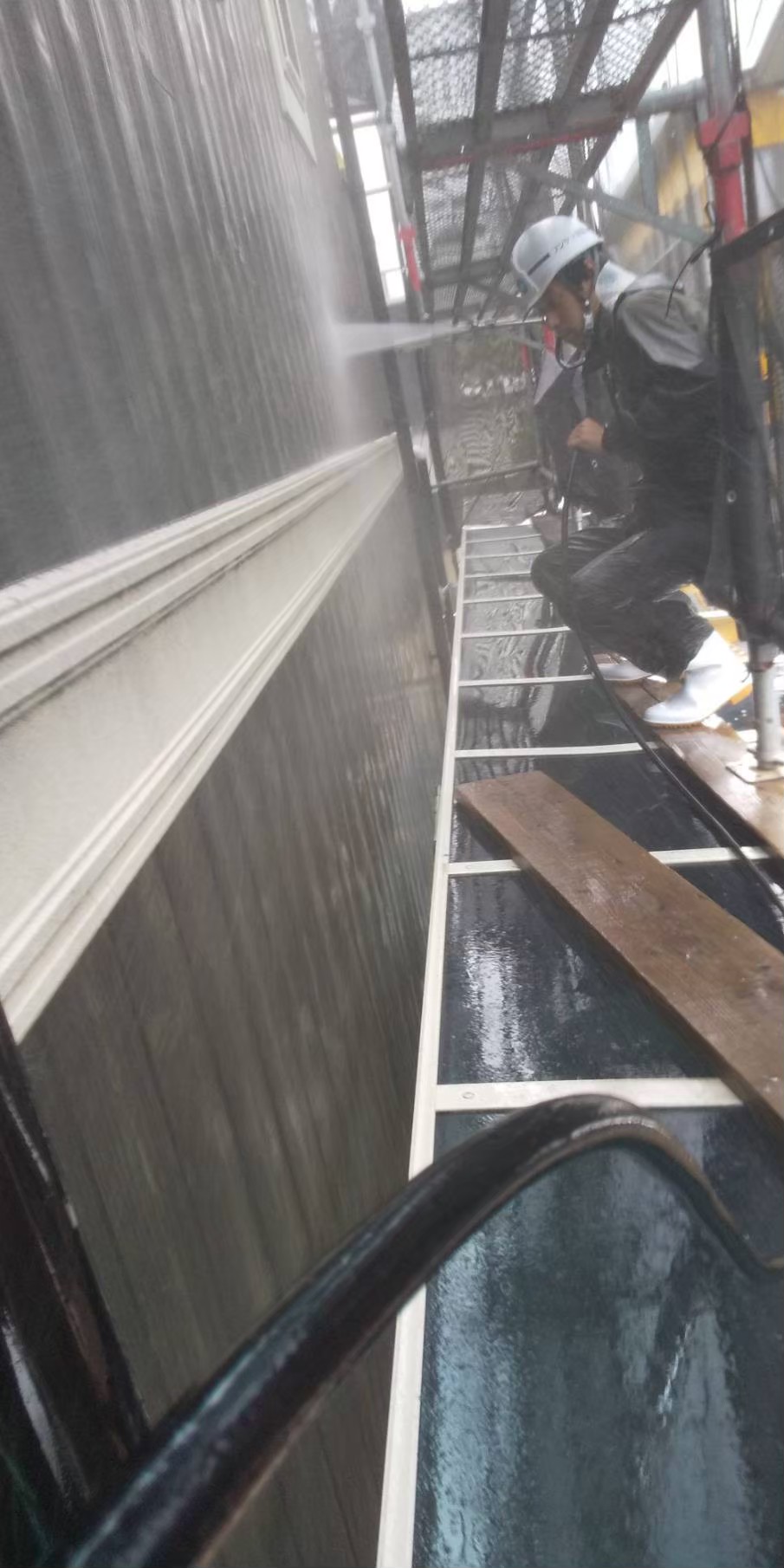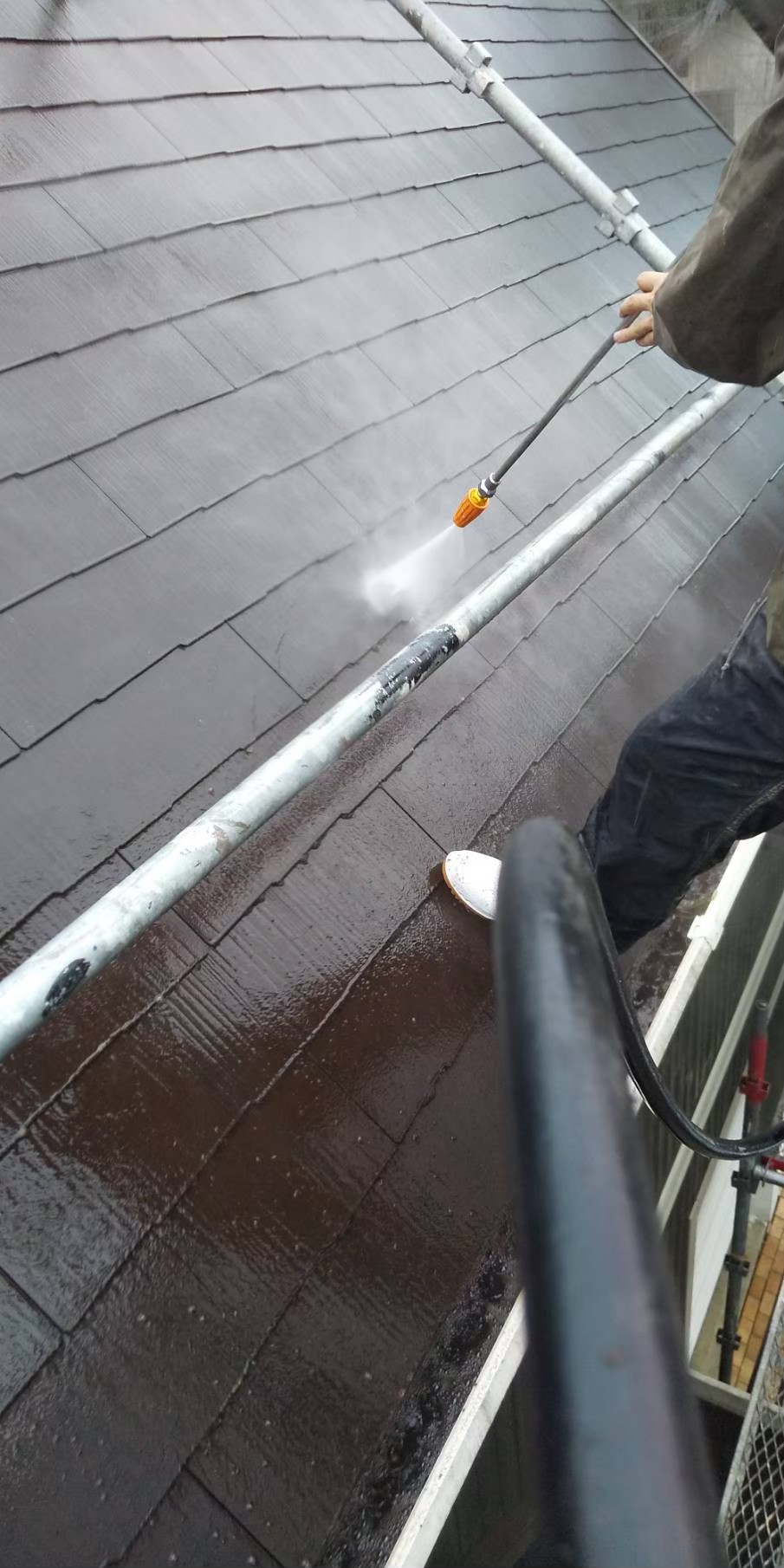 本日は屋根、外壁の高圧洗浄の様子をお伝えいたします。