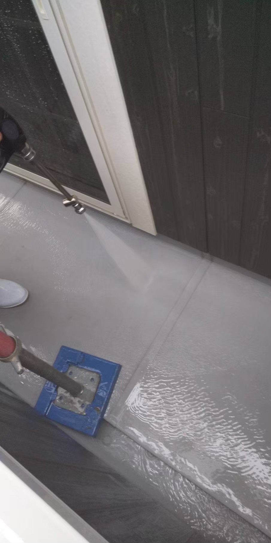 紫外線の影響を受けやすい箇所でもあり、劣化やコケなども多く見られる為、高圧洗浄でしっかりと洗っていきます。