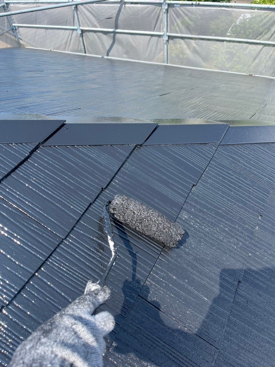 本日は屋根の上塗りの様子をお伝えいたします。
